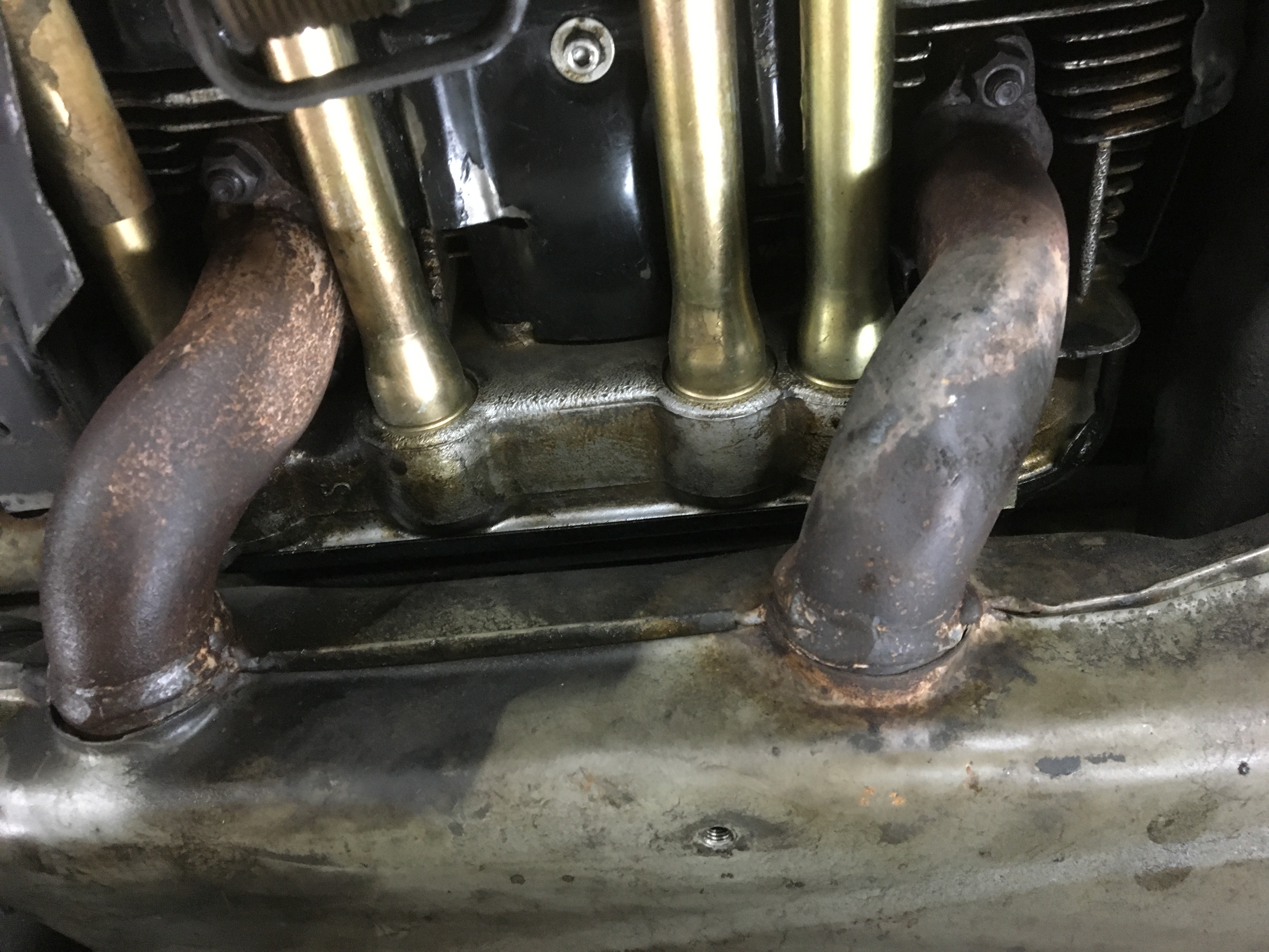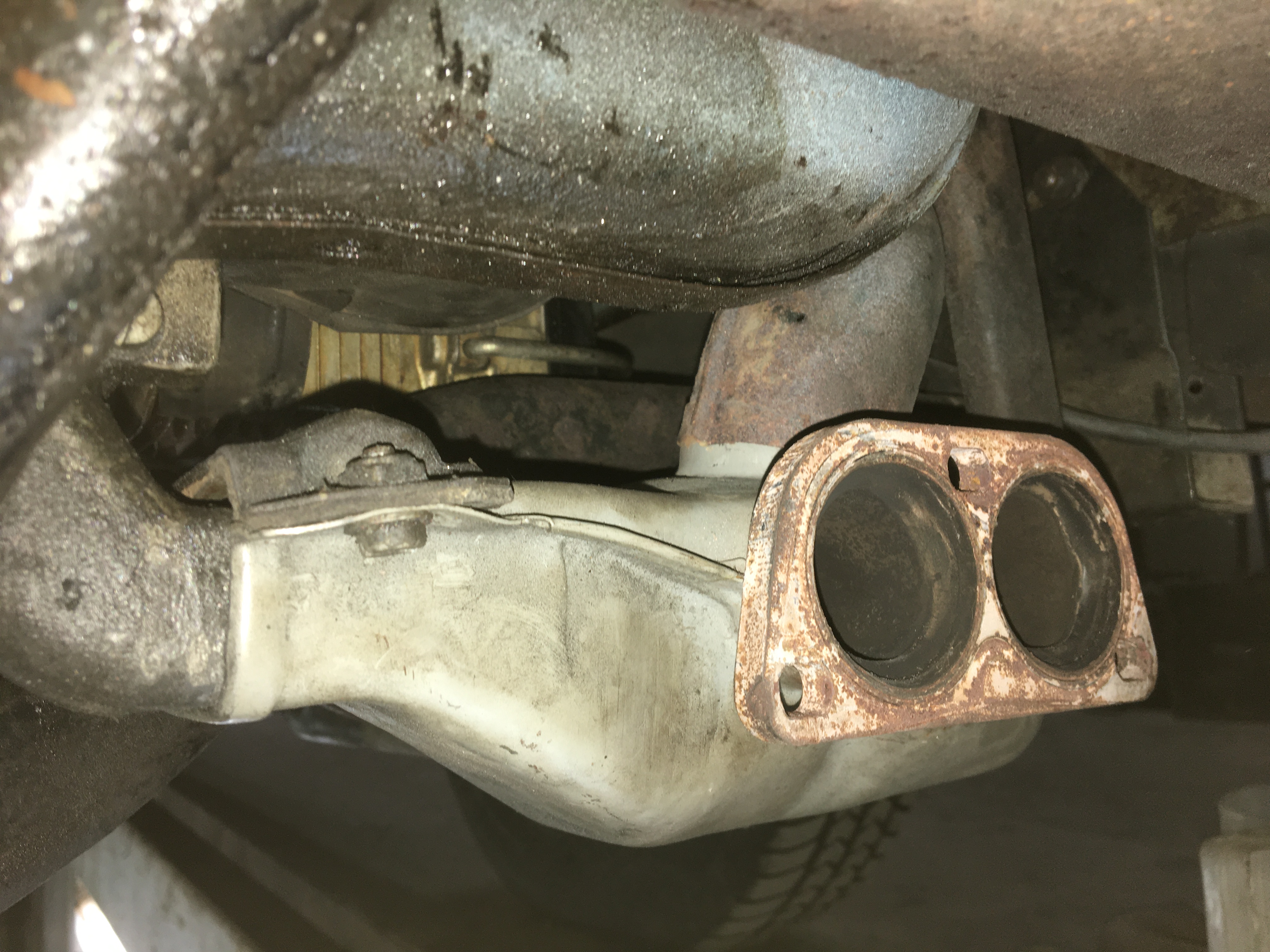 Hier die Ansicht des linken Wärmetauschers (die Abgasrohre sind ziemlich rostig)