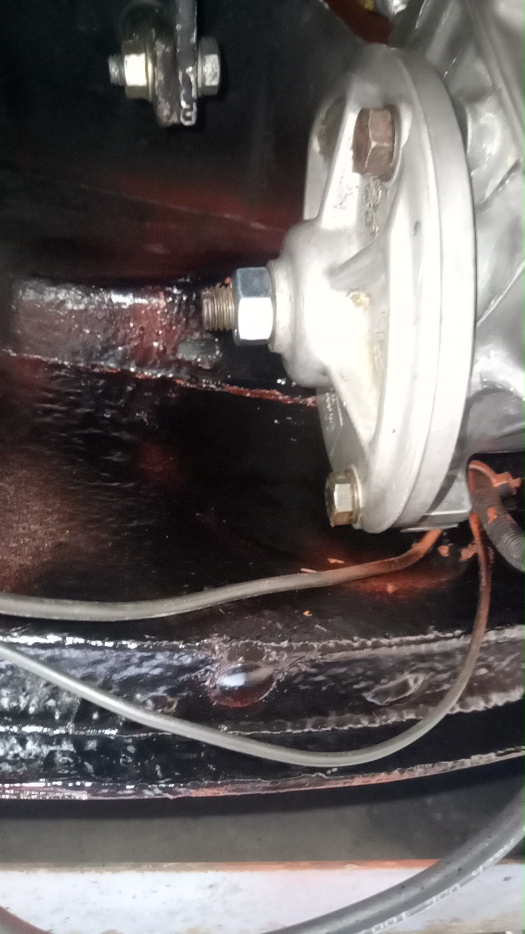 13. Rostschutz und Lack, dann das Getriebe mit der Verstärkungsplatte auf der rechten Seite einbauen und wieder mit der Lenkwelle zum Lenkrad fluchtend ausrichten.