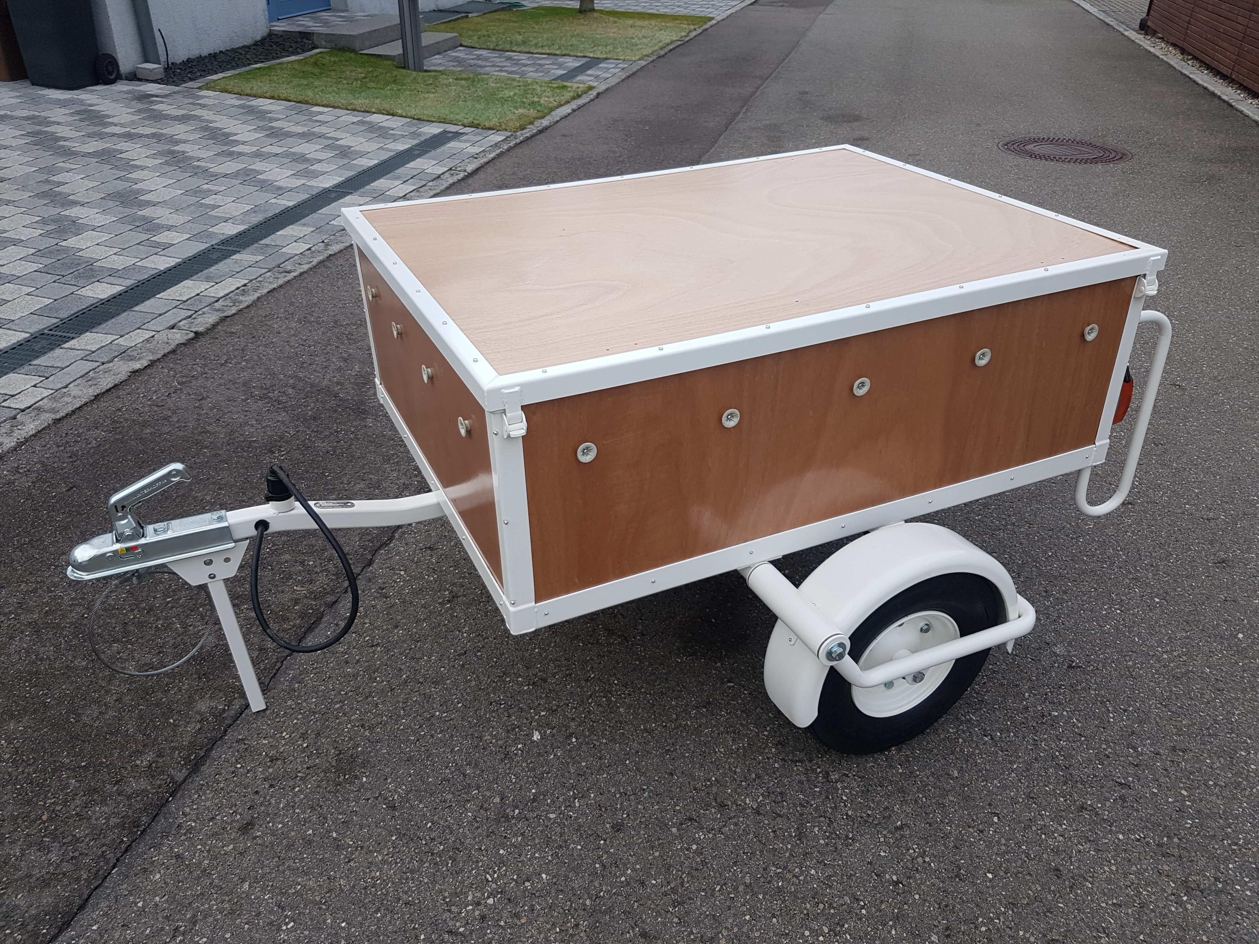 Bezüglich Fahrradträger, wenn ihr die wirklich oben drauf schrauben wollt: denkt bitte auch an den Schwerpunkt, und daran dass so ein Hänger durchaus schlingern und in Spurrillen wild hüpfen kann. Wenn dann der Schwerpunkt weit oben ist liegt das Ding ganz schnell auf der Seite...