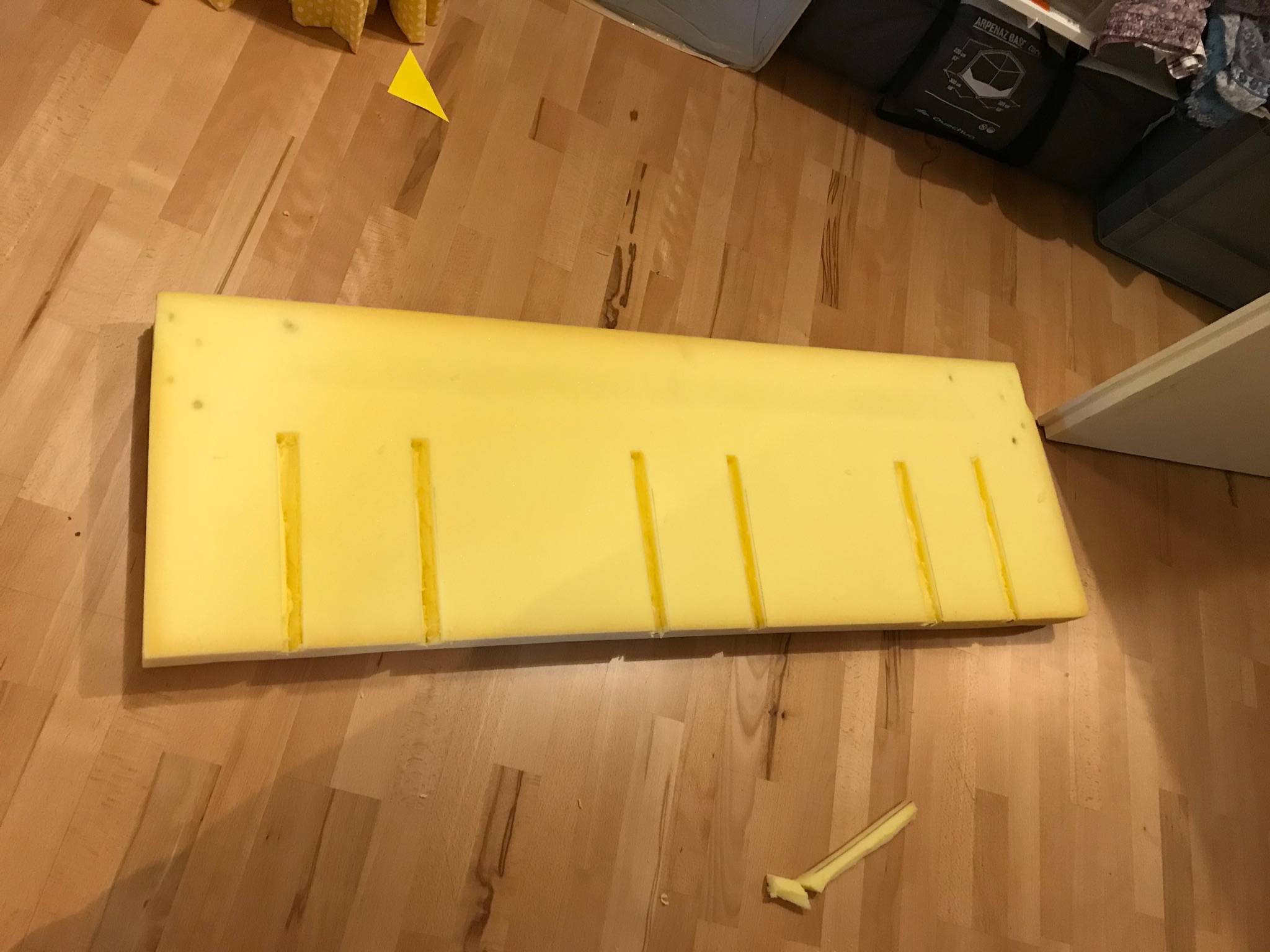 Allerdings frage ich mich wie groß bzw klein die Mitfahrer hier sind, da die Kopfstützen doch nach wie vor sehr niedrig sind. Wenn ich meinen Sohn auf der Rückbank sitzen habe dann müsste die Kopfstütze fast in Höhe des Dachstaukastens sein, und genau dort habe ich deswegen auch eine Polsterung angebracht.