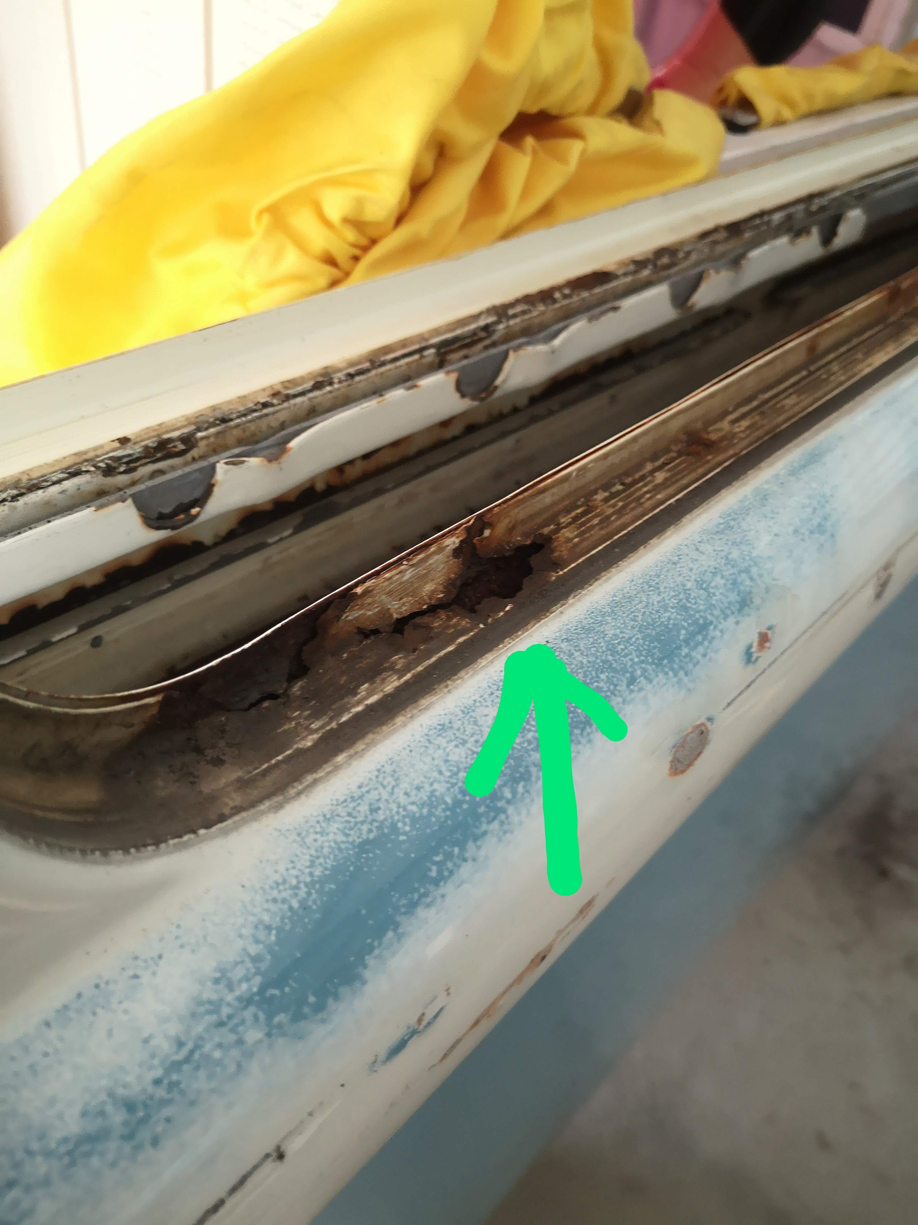 An zwei Stellen habe ich leider Löcher im Blech aufgefunden. Im Bild ist die Schiebetür zu sehen. Das andere Loch ist auf der Fahrerseite.