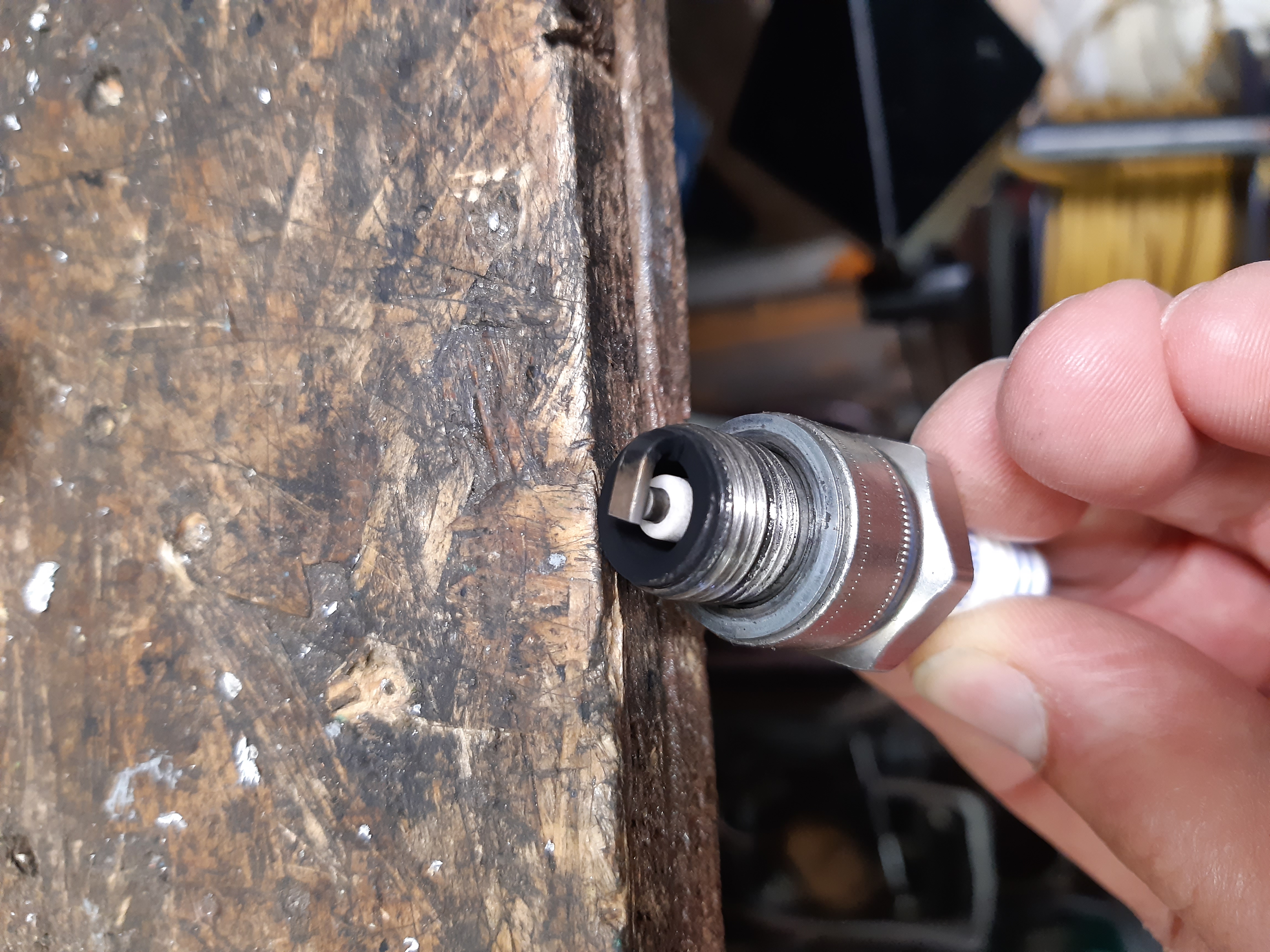 Kerzen raus, Zylinder 1 schwarz. Geputzt, getestet. Funke kommt.