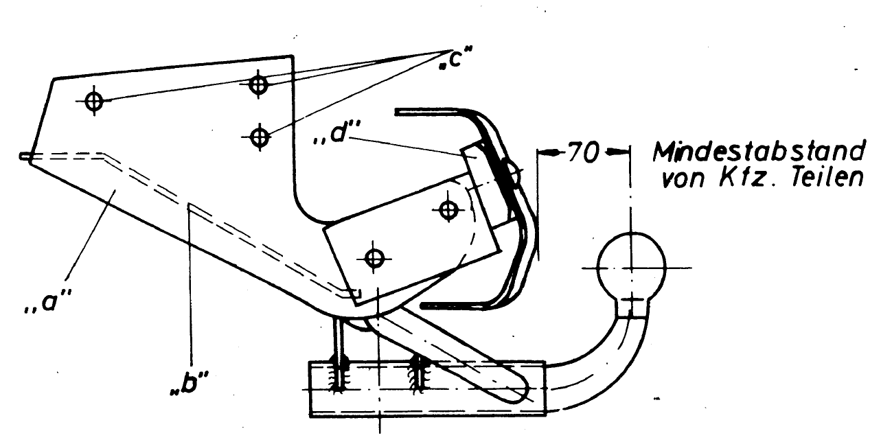 ich finde die Zeichnung leider nicht mehr. Ist aber schnell selber erstellt anhand von diesem Bild in der Betriebsanleitung von Westfalia, ist ja nur ein rechteckiges Blech mit zwei Löchern.