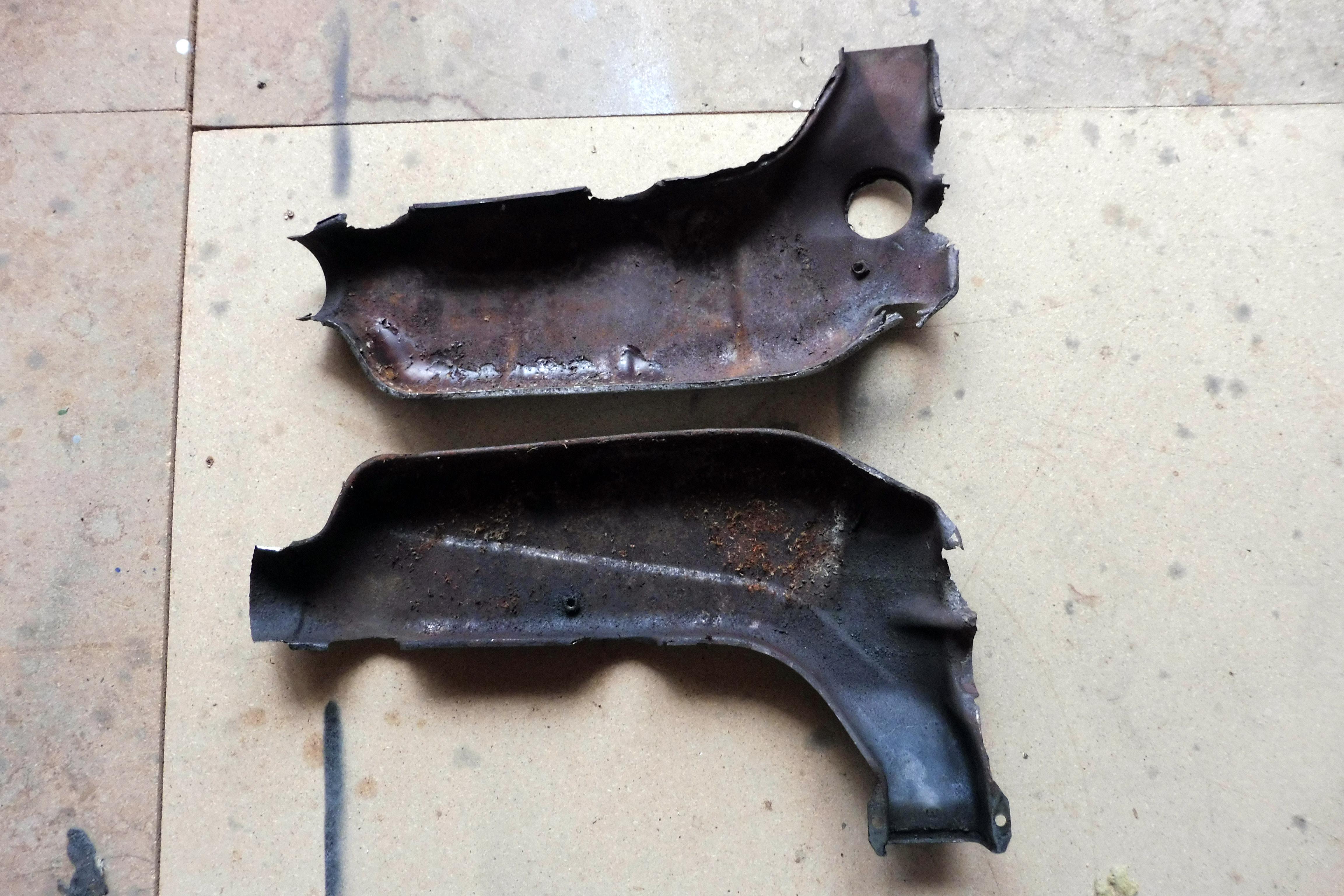 Ich habe die Reparaturbleche von Ralf genommen, sehr zu empfehlen. Nach dem Schweißen und verschleifen wurden die Bleche mit Alu flammgespritzt und danach mit Hitzeschutzlack lackiert. Die alten Asbestmatten wurden auch ersetzt.