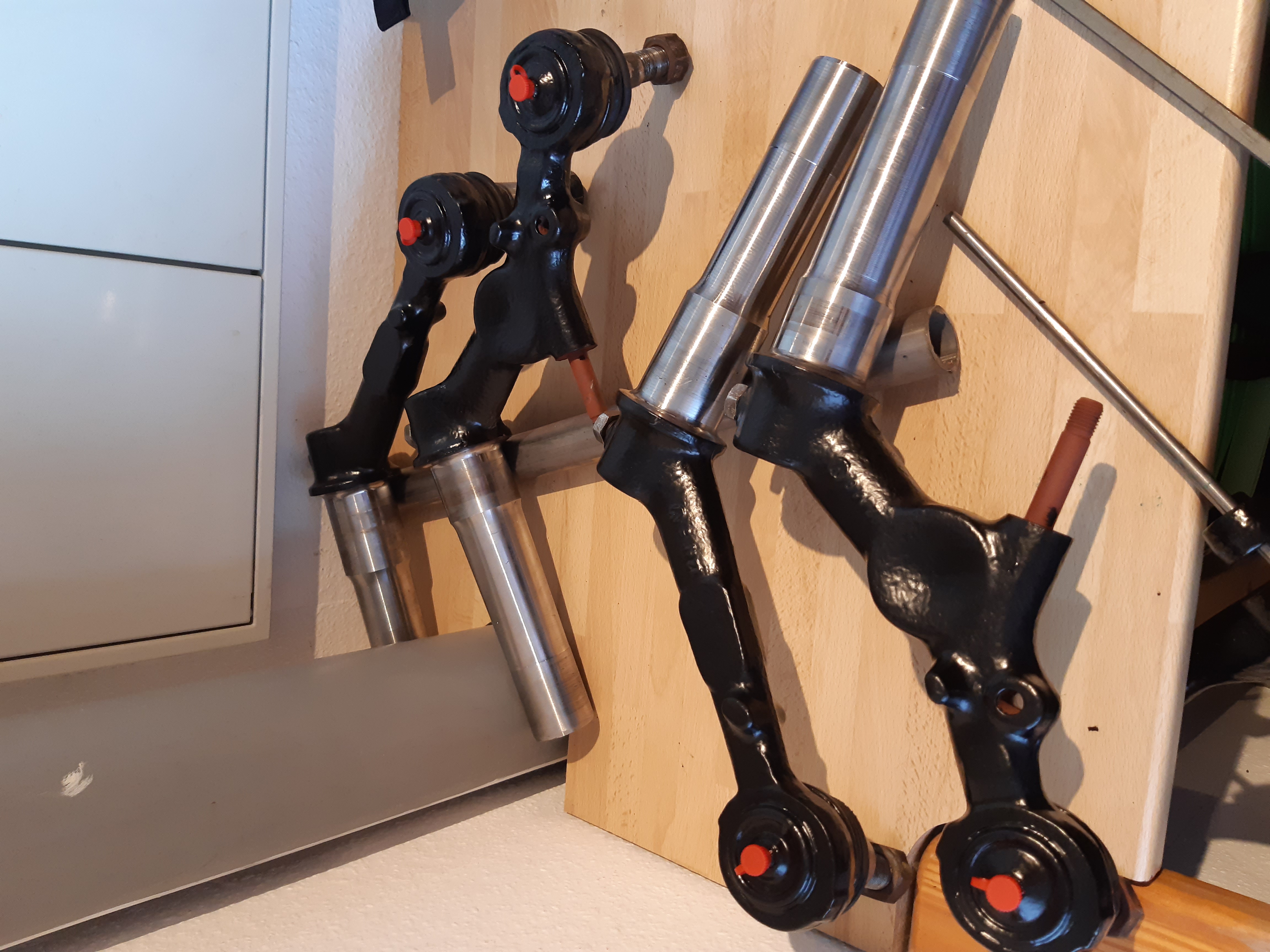 Offenbar noch originale Achse /Traggelenke, da hätte man wohl Druckschmierköpfe nachrüsten können, so es sich dann wegen des Verschleißes überhaupt gelohnt hätte.