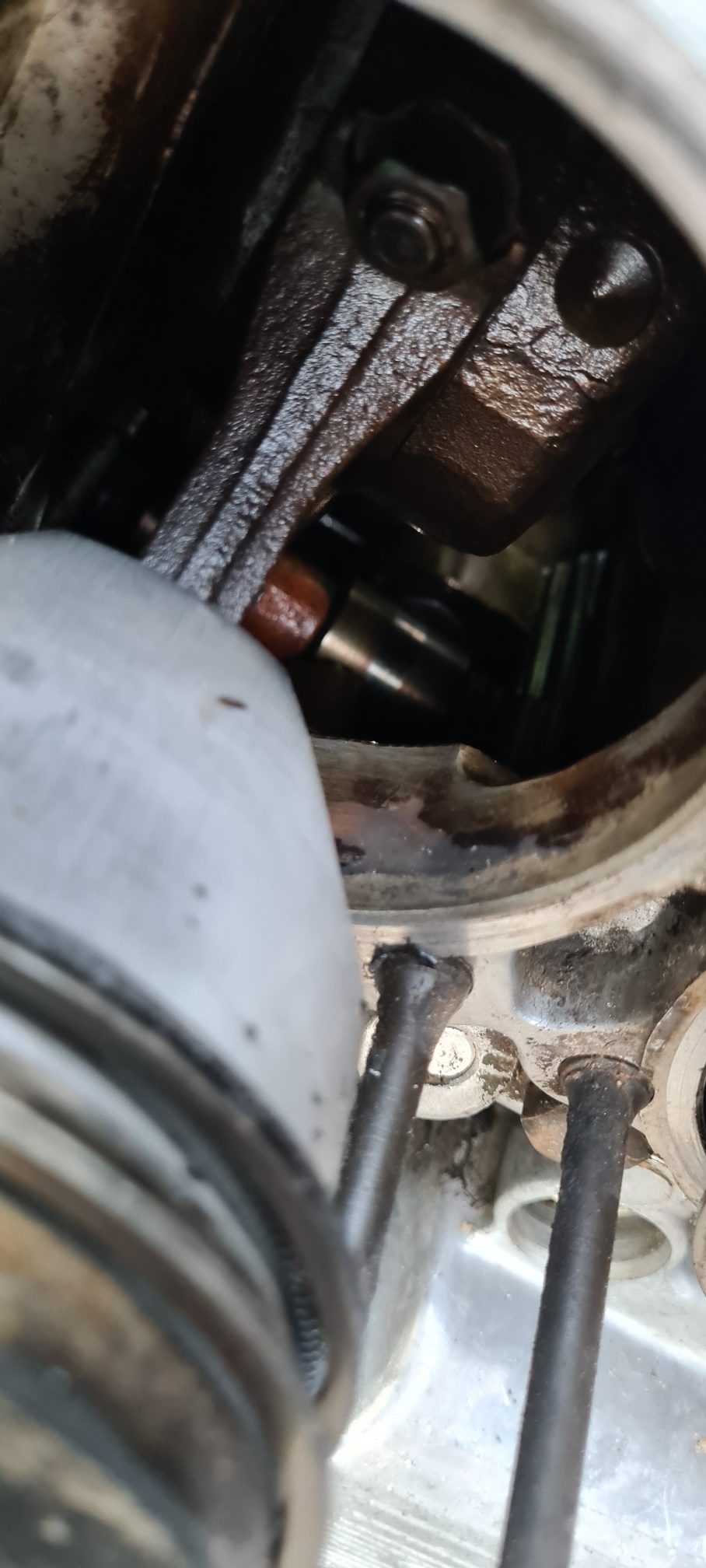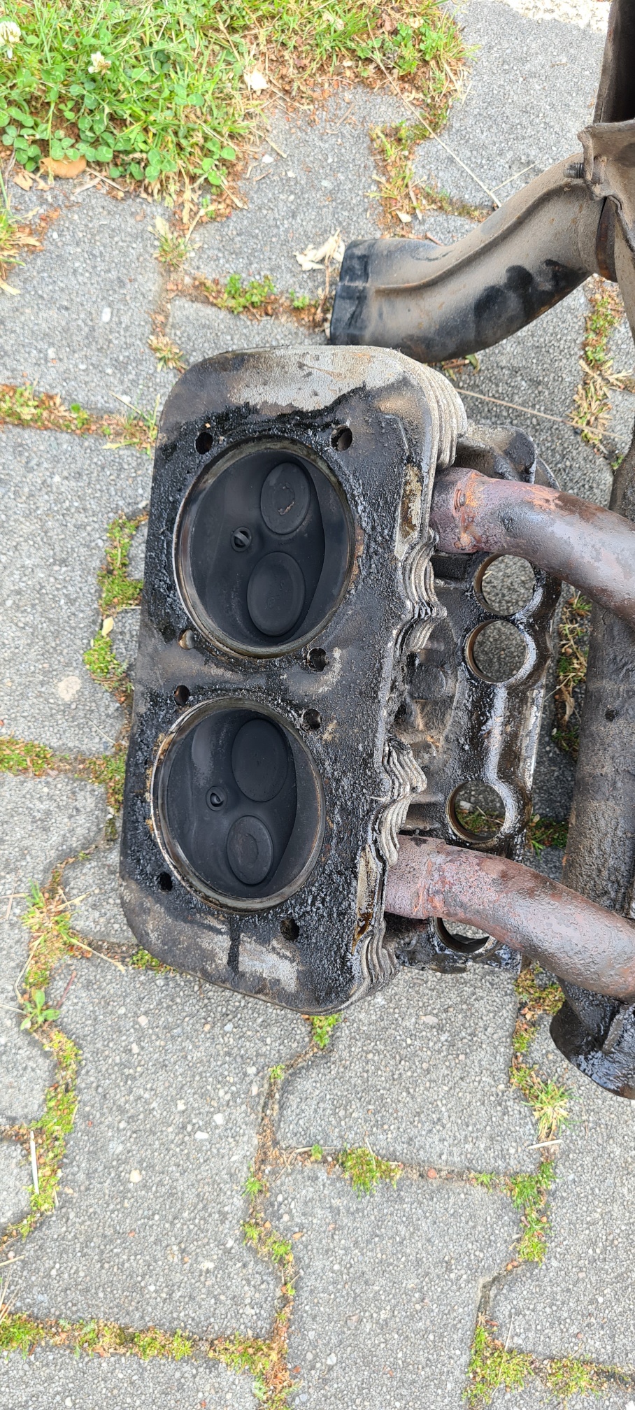 Nach anfänglicher Euphorie kam die Ernüchterung, es zeigte sich leider dass die Zylinder am Kopf abblasen und auch am Zylinderfuß Öl austritt, zudem war eine Seite Zyl. 1+2 an den Zylinderfüßen und auch den Stößelschutzrohren mit schwarzer Dichtmasse vollgesaut. Zylinder 3+4 keine Dichtmasse, aber Unterlegringe verbaut.