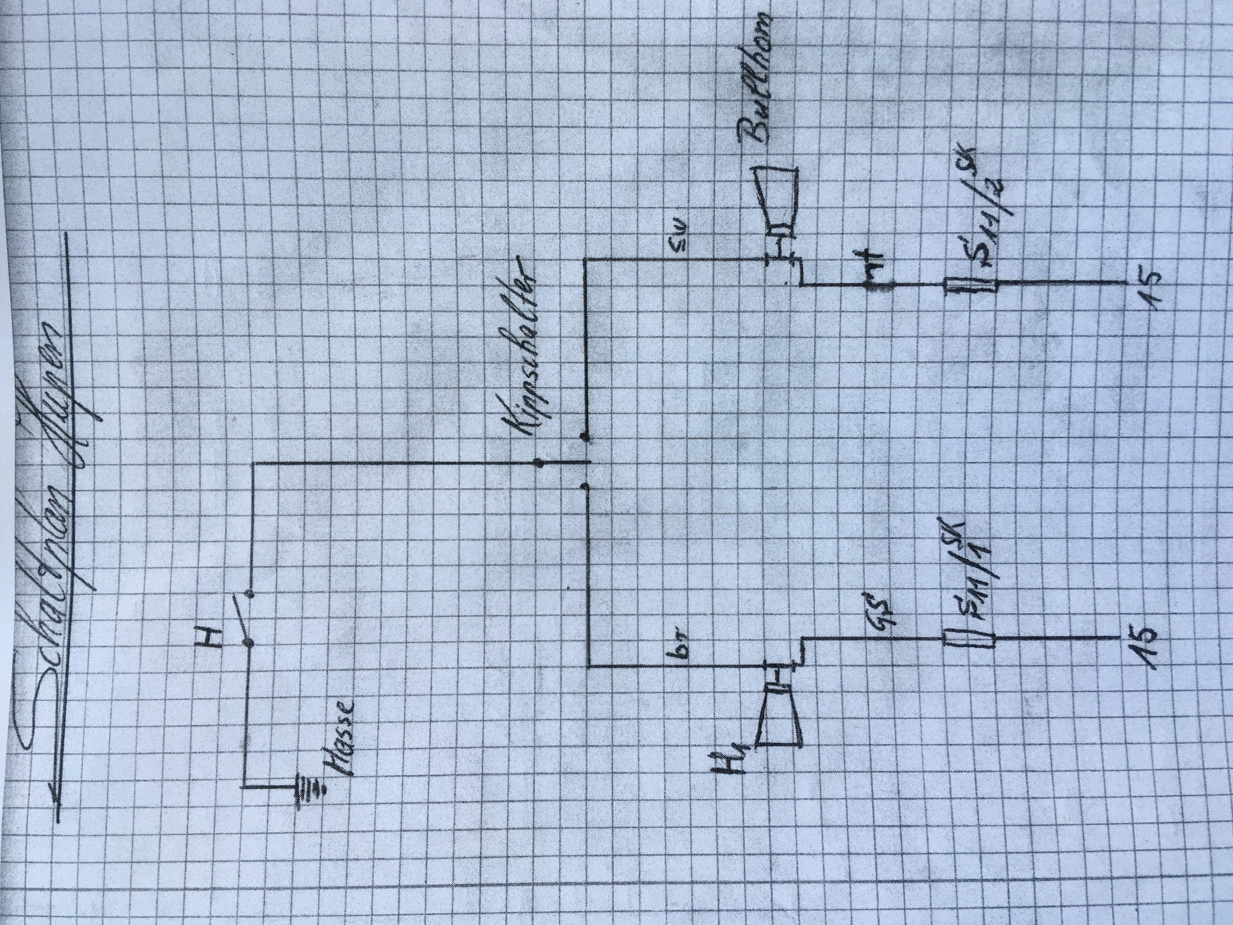 Mich triggert schon lange der hohe Strom der beim Hupen durch das Lenkgetriebe fließt. Deshalb sollen beide Hupen über ein (oder 2?) Relais geschaltet werden.