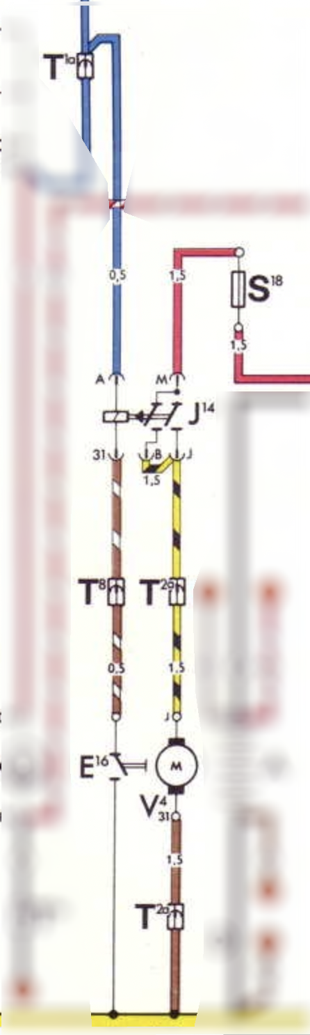 (statt des blauen Kabel wie oben wird nun das schwarze von Klemme 15 genutzt) der Stecker geht an ein Relais J14, der den Lüfter schaltet über den Heizungshebel,