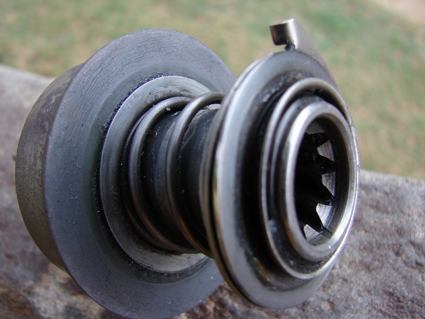 ... und ja, beim ausgebautem Anlasser sollte man das Ritzel gegen die vorhandene Federkraft bis an den Anschlagring ziehen können.