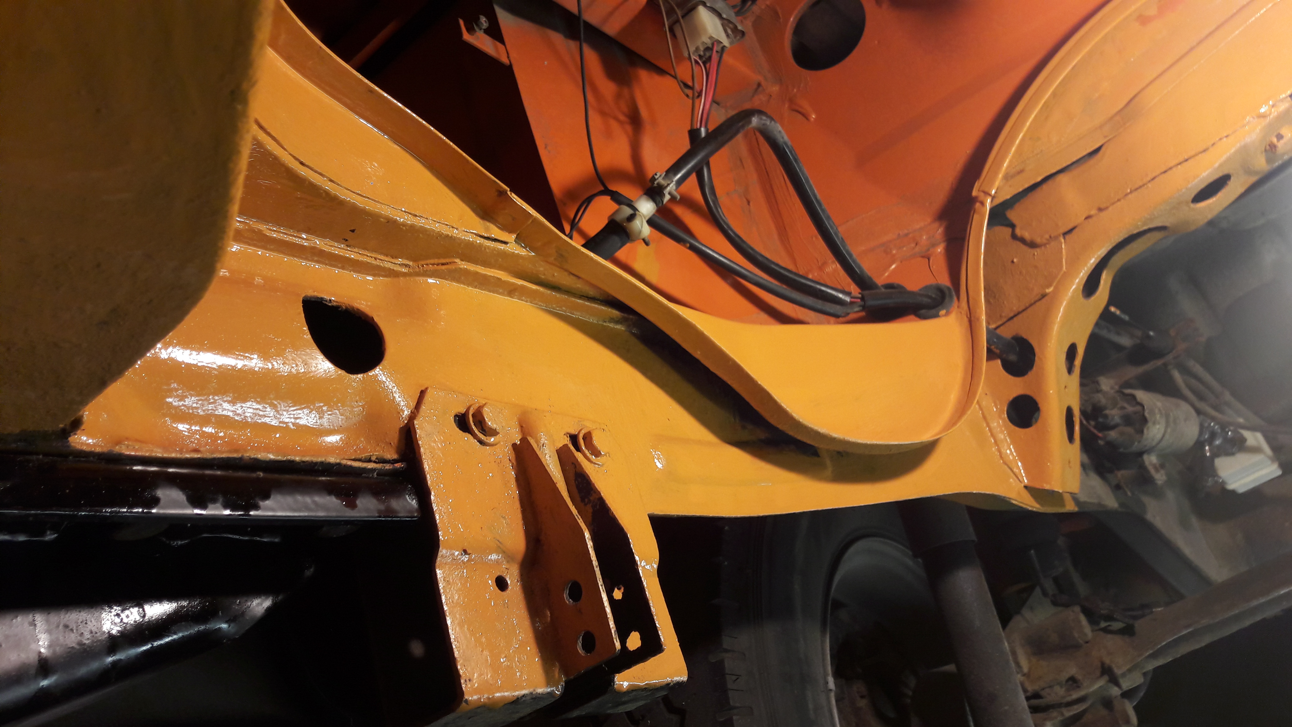 Ich habe Abschaltventil und Pumpe hinten rechts am Längsträger montiert, davor den Spritfilter - das Relais habe ich unterm Armaturenbrett. Das Signal für den Drehzahlmesser hatte ich eh schon da liegen und ein paar zusätzliche Adern wollte ich in diesem Zuge ohnehin nach hinten verlegen.