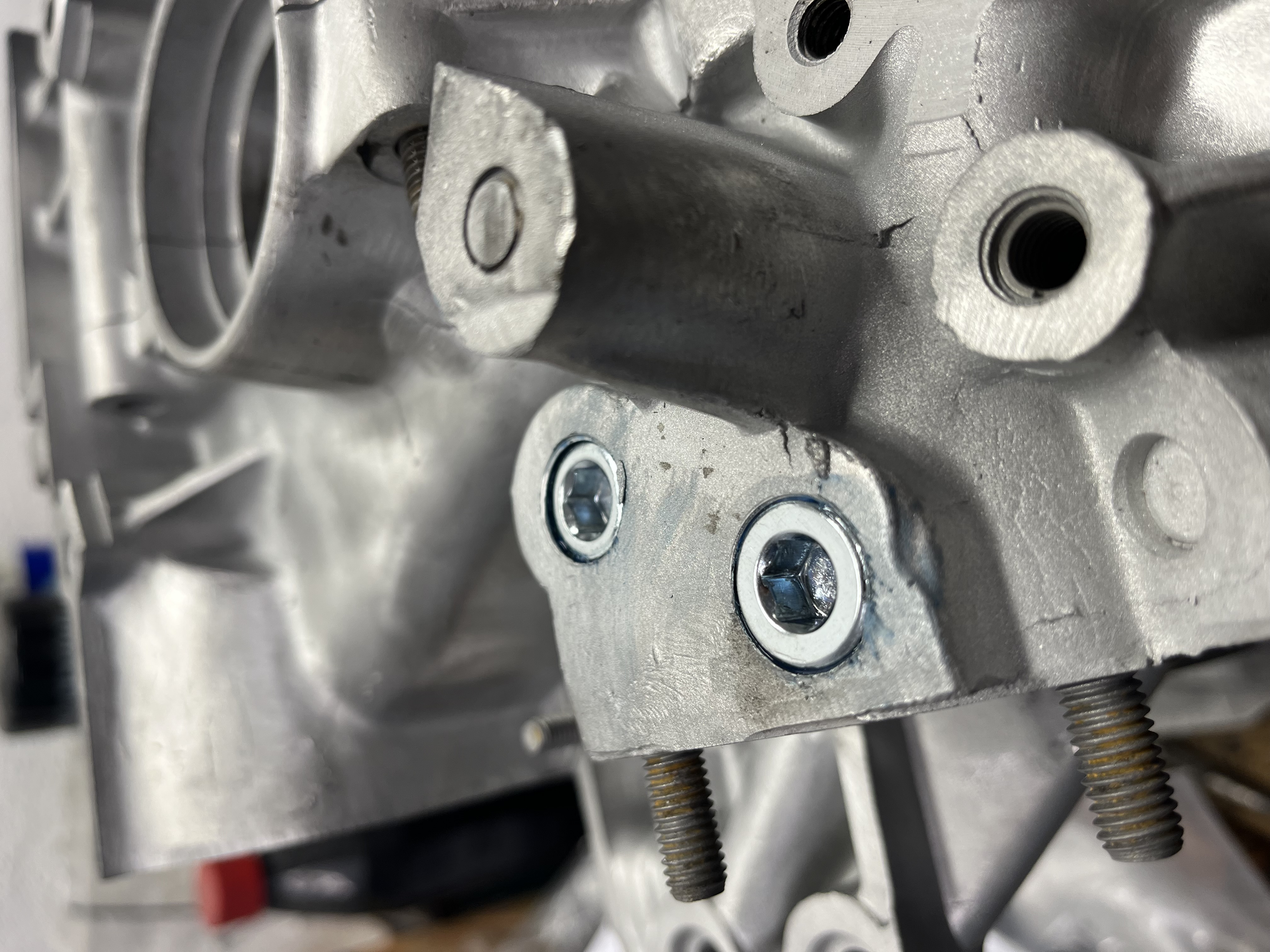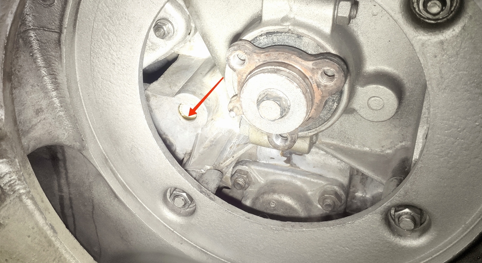 Das ist der Verschlusstopfen von einem der beiden Ölkanäle des Ölfilters. Um das zu reparieren muss der Stopfen raus und durch einen neuen Stopfen ersetzt werde. Entweder die Bohrung sauber aufreiben und einen passenden Übermaßstopfen setzen oder ein Gewinde schneiden um einen Gewindestopfen setzen zu können (so machen es die meisten Motorenbauer).