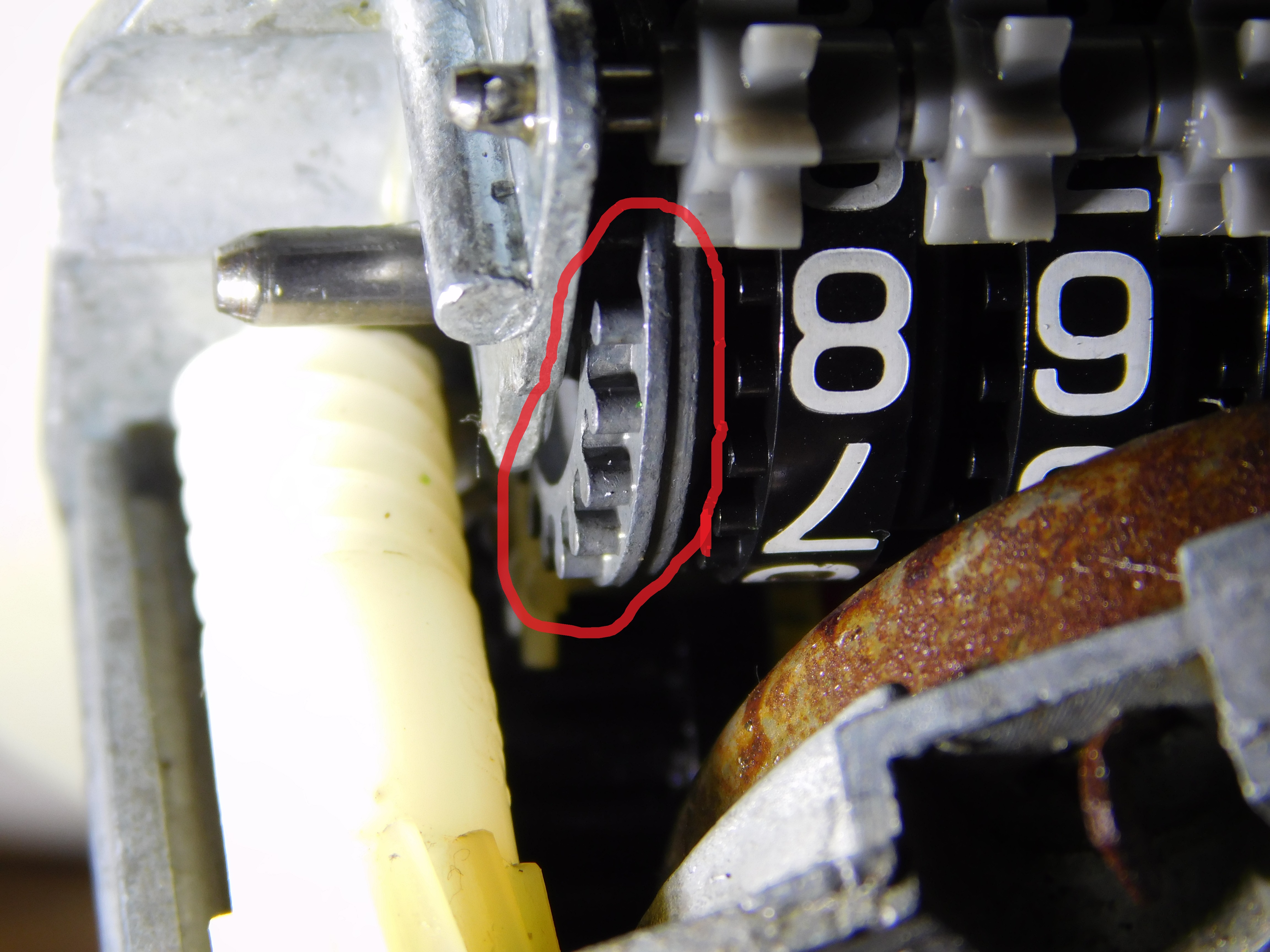 Nach dem Ausbau habe ich unter zuhilfenahme eines Akkuschraubers geguckt was sich dreht und was nicht. Tja, was soll ich sagen, alle Zahnräder sind vorhanden, keines hat Karies und alle drehen sich Ordnungsgemäß. Kann es sein das sich das Zahnrad, welches von der Schnecke angetrieben wird, leer auf der Welle dreht? Leider spielen da meine Augen nicht mehr mit um das zu sehen. Sollte jemand wissen wo meine Leselupe ist bitte ne PN an mich.