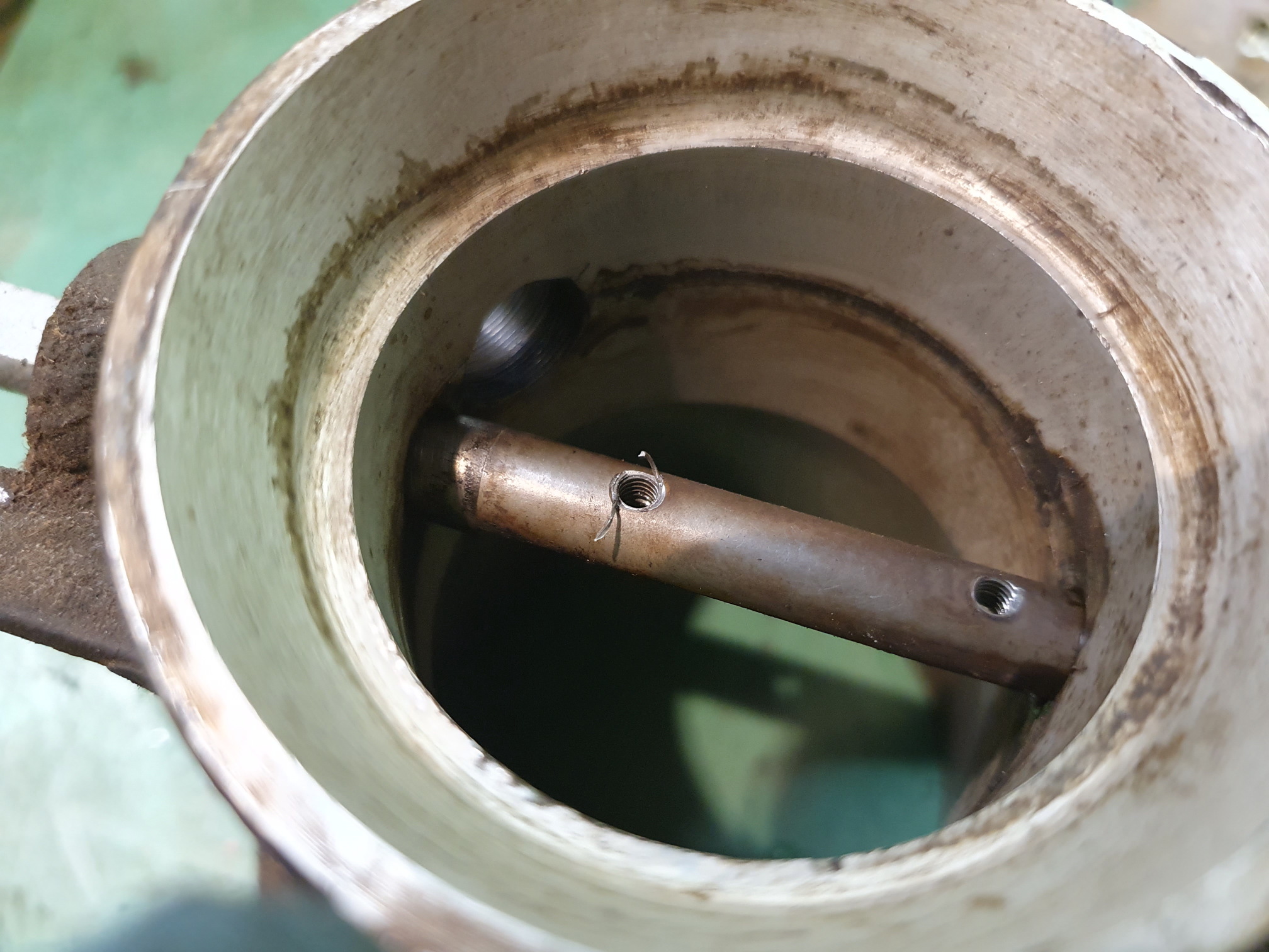 Den habe ich etwas angesenkt, damit ich die Welle ohne Beschädigung aus dem Gehäuse entfernen kann.