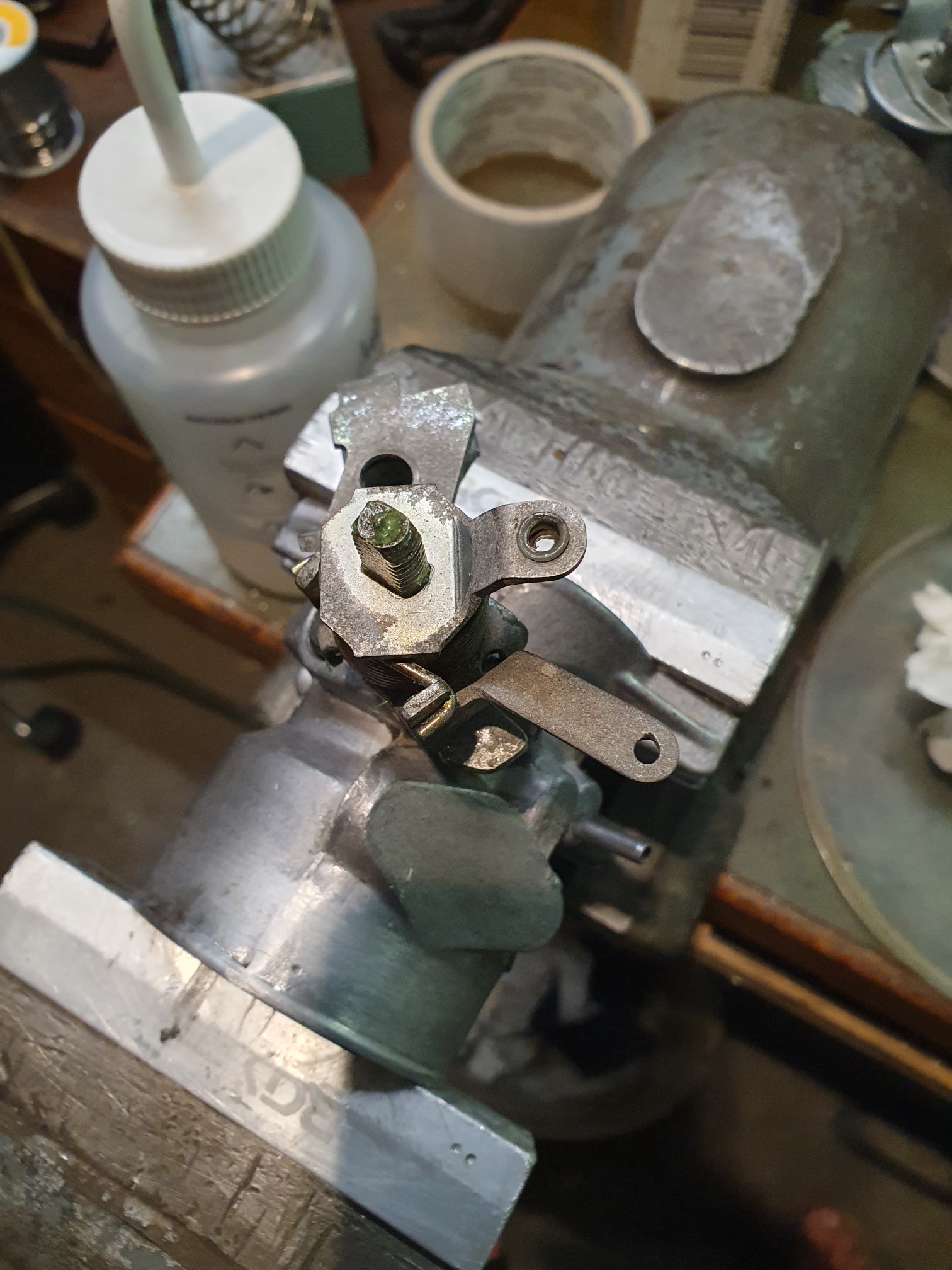 Der Absatz an der Welle gehört da nicht hin. Der kommt duch Reibung zwischen Messing und Alu zustande.
