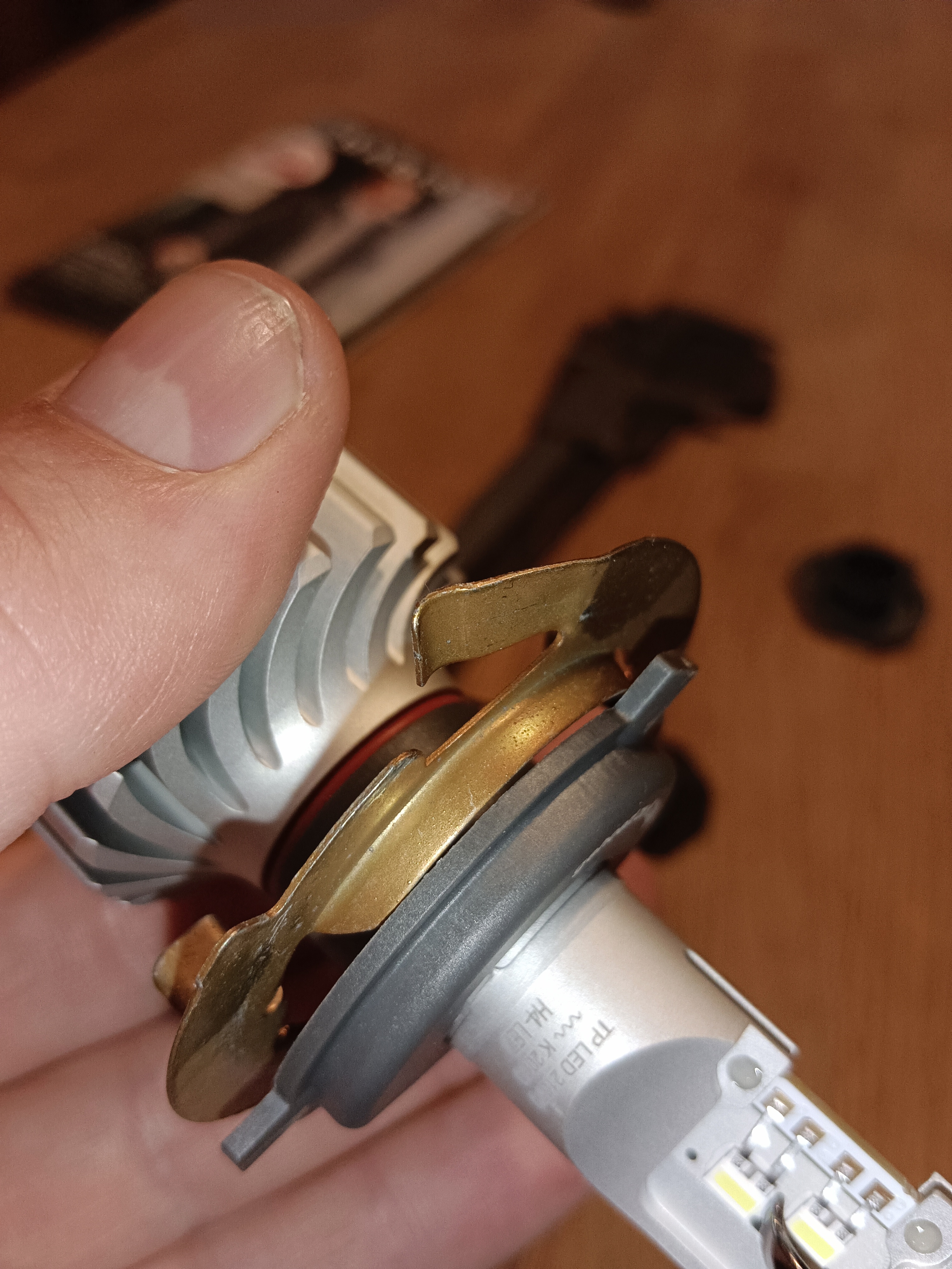 Habe LED Leuchtmittel von Philips mit H4 Sockel für die Hella Scheinwerfer E1 (14549 R7+R1) vom T2b Baujahr 77 gekauft, sie passen jetzt aber nicht. Der messingfarbene Drehring mit dem ich die alten H4 Leuchtmittel problemlos befestigen/einspannen konnte, rastet nicht in den Sockel des neuen LED Leuchtmittels ein. Ich kann also die neuen Leuchtmittel nicht niederspannen.
