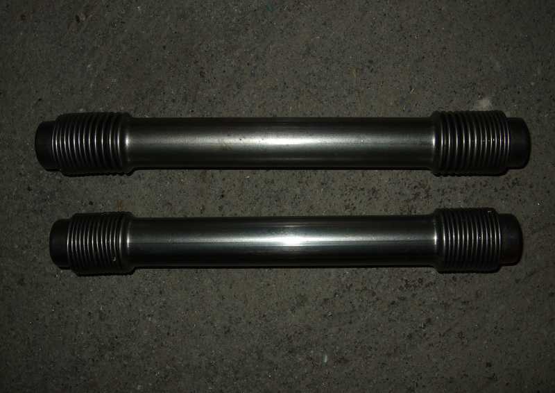 Jetzt kann man den Zylinderkopf soweit aufschieben, dass die Rohre mit den Dichtungen komplett in den Sitzflächen stecken. Je nachdem, wie lang man die Rohre gezogen hat, muss man mit mehr oder weniger Kraft den Zylinderkopf gegen die Zylinder pressen, um die erste Mutter aufschrauben zu können. Es empfiehlt sich, mit einer mittleren unteren Mutter zu beginnen, erstmal ohne Unterlegscheibe. Wenn die Mutter mit viel drücken gerade so greift, ist die Spannung der Rohre hoch genug, um nachher die Dichtungen auch dicht zu bekommen. Diese Mutter dann soweit aufschrauben, dass man die anderen Muttern mit den Unterlegscheiben aufschrauben kann. Die erste Mutter nochmal abschrauben und auch da die Unterlegscheibe drunter legen.