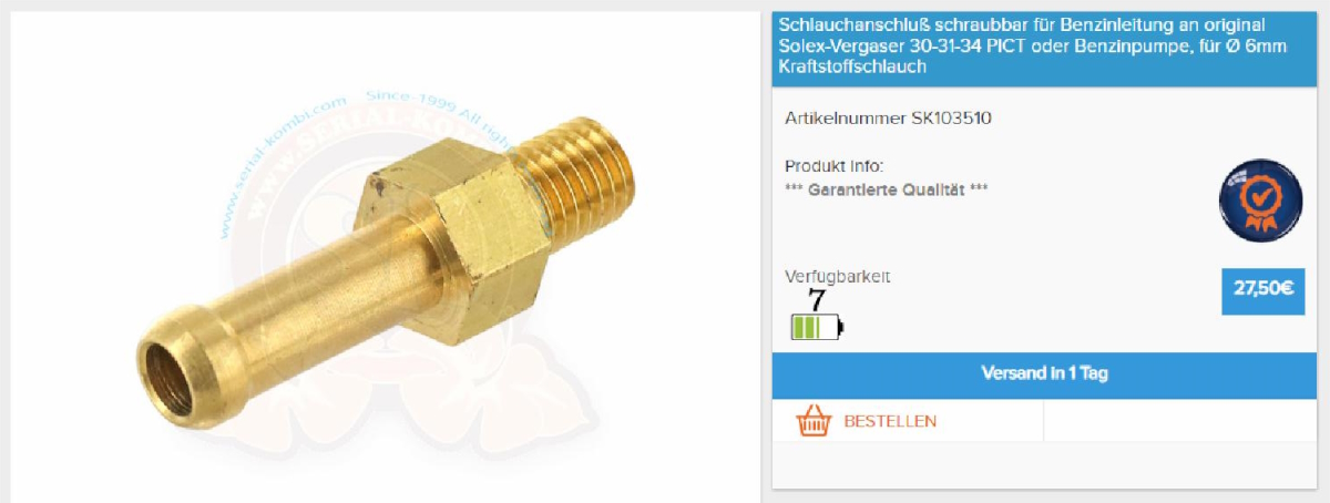 Hier bietet ein Händler einen Schlauchanschluss zum Einschrauben an, ist zwar nur für Zentralvergaser angegeben, sollte aber auch für Doppelvergaser geeignet sein: https://www.serial-kombi.com/de-DE/t2-m ... ch-n328247