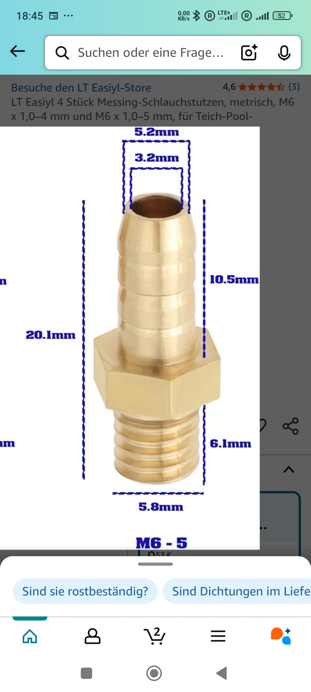 Passt vielleicht noch etwas besser M6 auf 6 mm