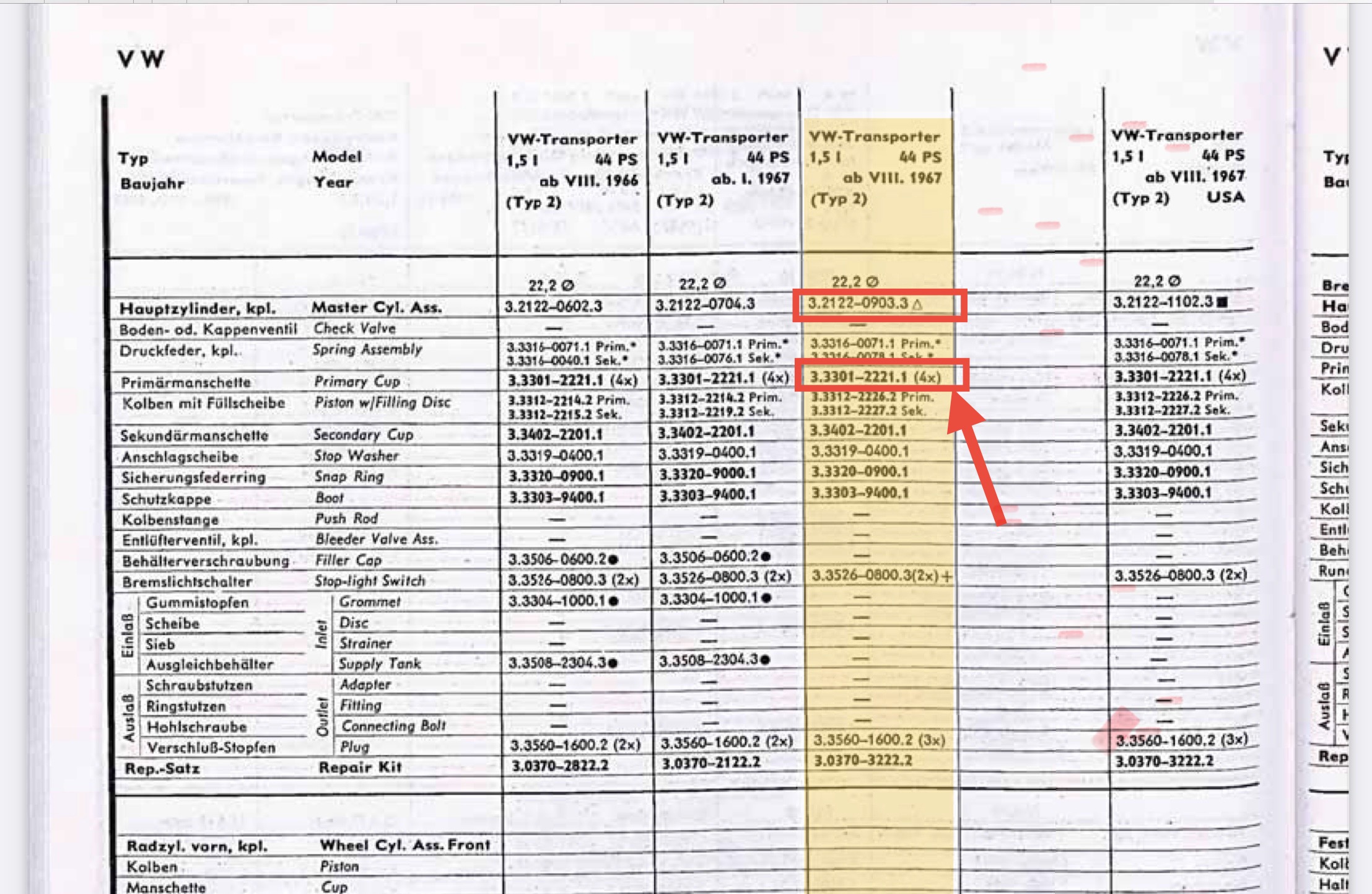Der gute Mann hat mir vier Primärmanschetten und eine Sekundärmanschette verkauft gehabt und ging nach dem ATE-Katalog vor (wo er auch fleißig drin blätterte).