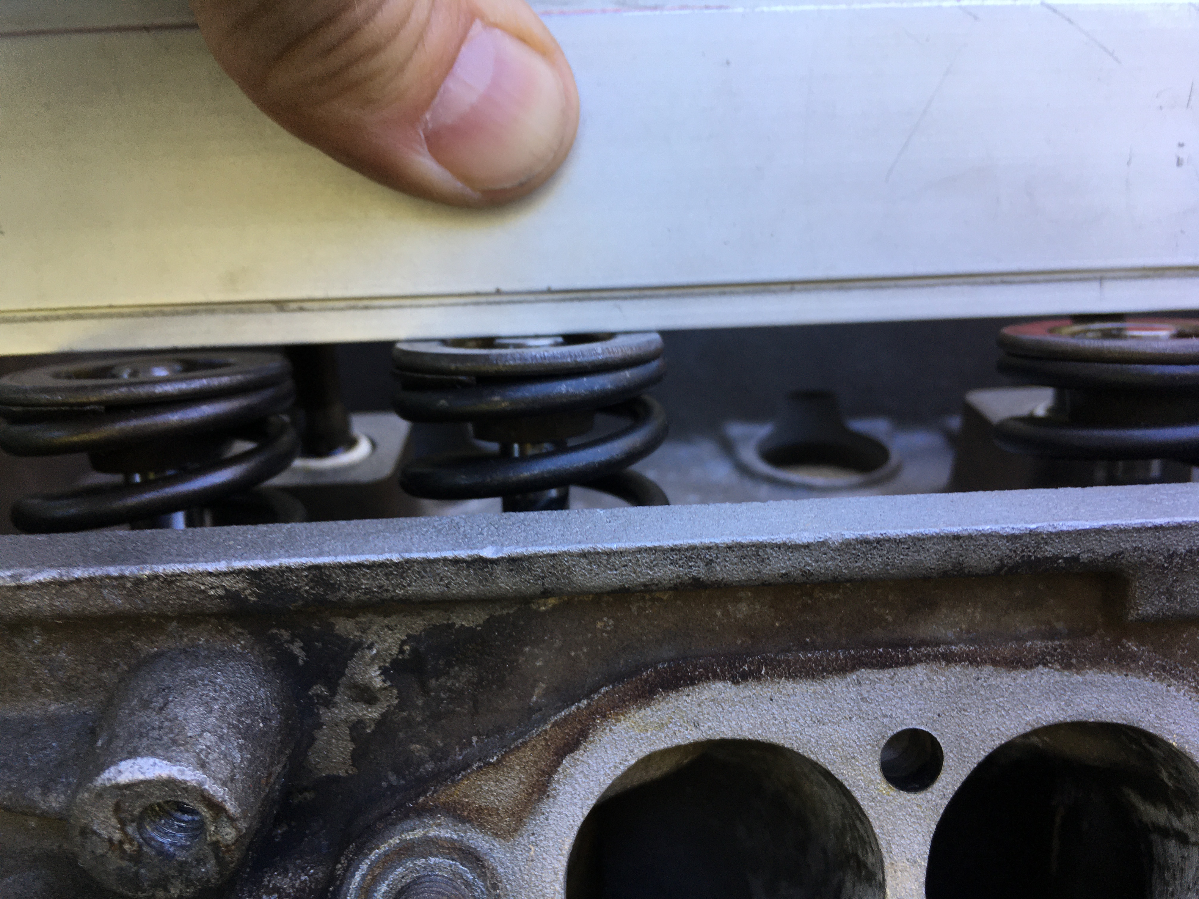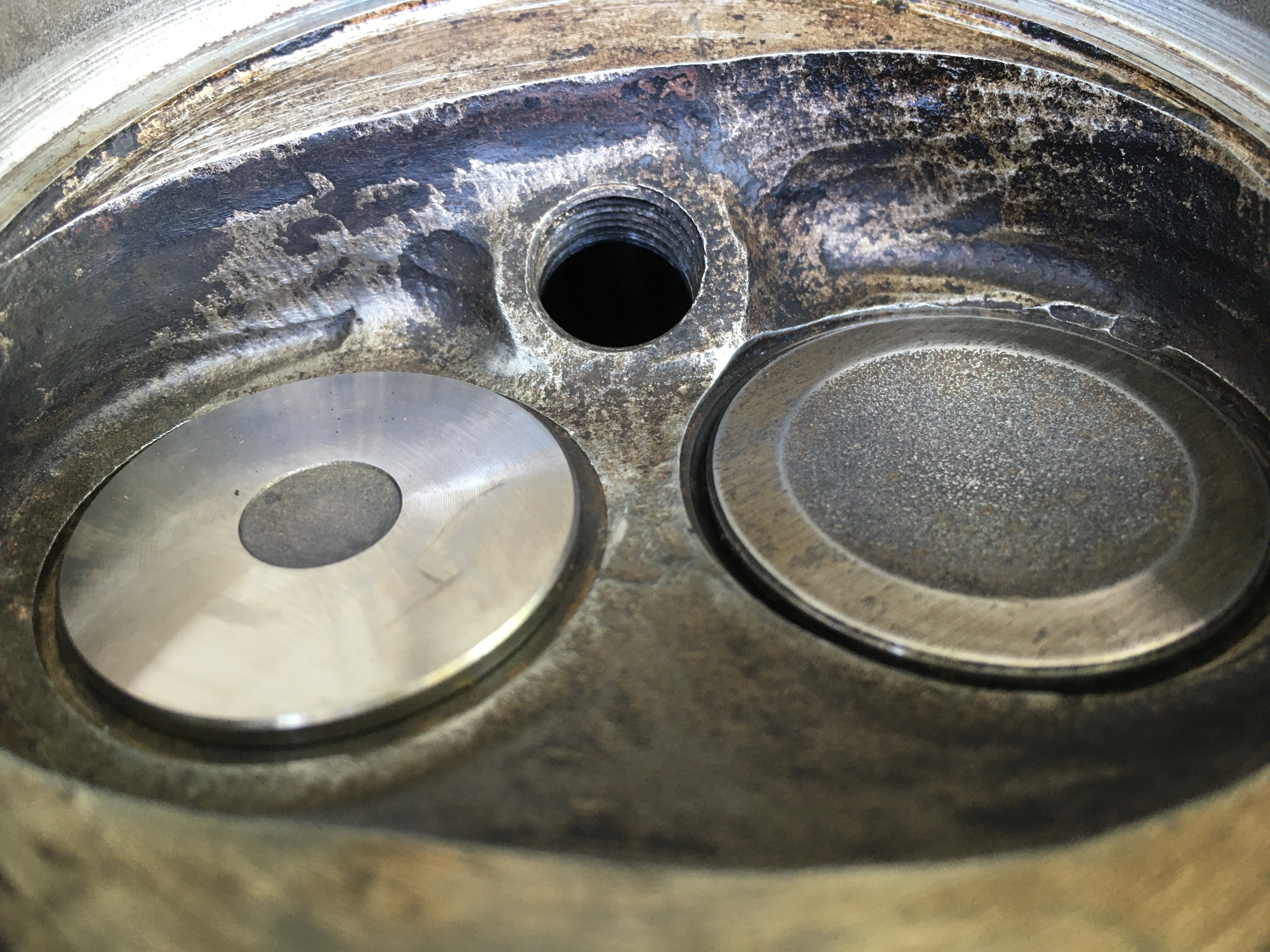 Allein: Einer der Einlassventilsitzringe sitzt auffällig tiefer als die anderen Sitzringe. Alle 8 sitzen irgendwie etwas unterschiedlicher zueinander als die von zwei paar originalen VW-Köpfen, die ich zum Vergleich habe (Mexico und 040 2BR). Frage wäre jetzt, ob das normale Verarbeitungstoleranzen sind / sein können, oder ob sich da was eingearbeitet hat. Mir fehlt da Erfahrung und Kenntnis der Materie, beim googeln fand ich was zu Ventilen, die sich in Sitze eingearbeitet haben, aber nichts zu Sitzen, die sich in den Kopf eingearbeitet haben...