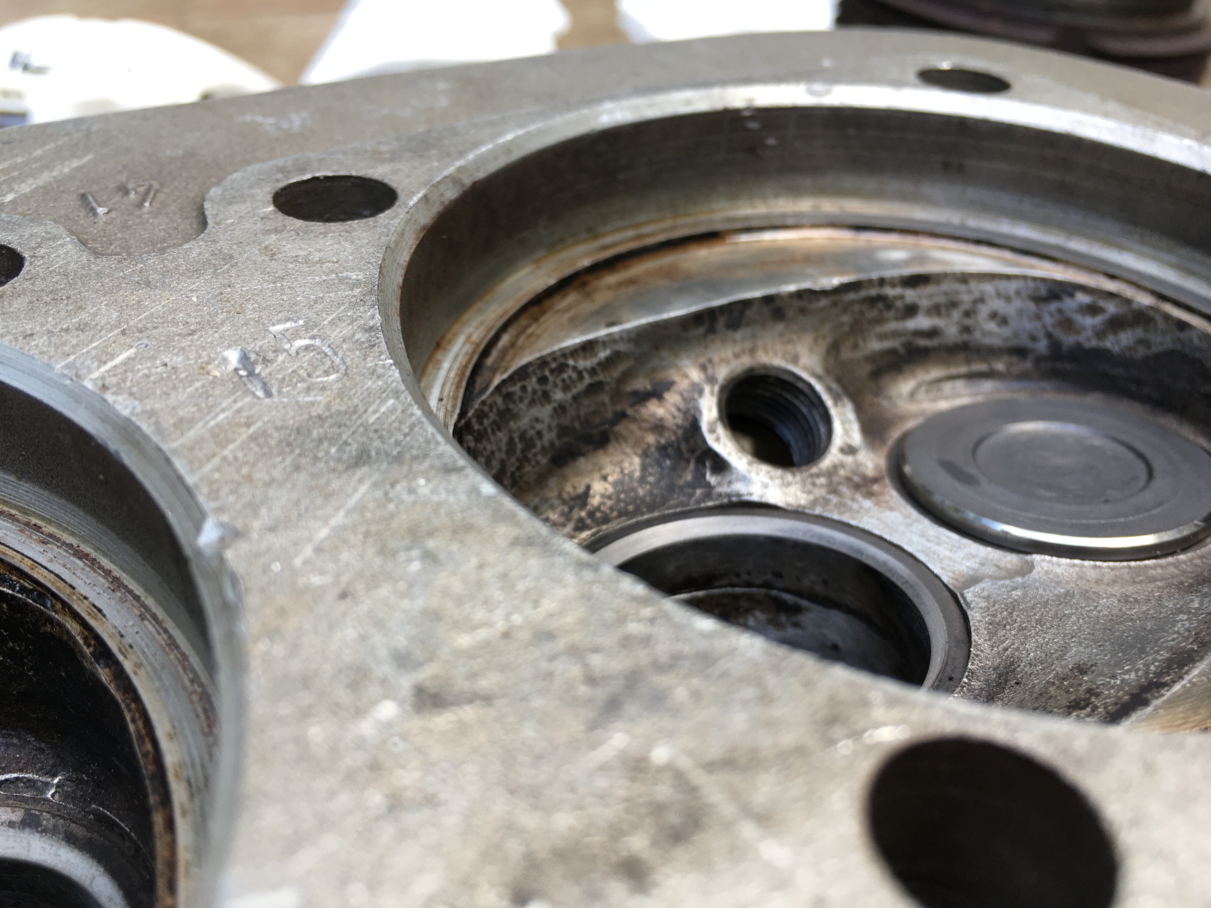 Ich hab hier jetzt ein paar Zylinderköpfe, deren Brennräume zwar etwas rustikal gearbeitet aussehen, die aber keinerlei Risse haben. Gewinde sind gut, Führungen haben noch absolut akzeptable Kippspielwerte, Ventile sind dicht. Die würde ich ganz gerne dafür verwenden. Die Köpfe waren früher mal an dem Motor meines ersten T2, gekauft 1995, sind offensichtlich nicht original, Laufleistung natürlich komplett unbekannt. Maße der Ventile alle durchgemessen, ohne Auffälligkeiten.