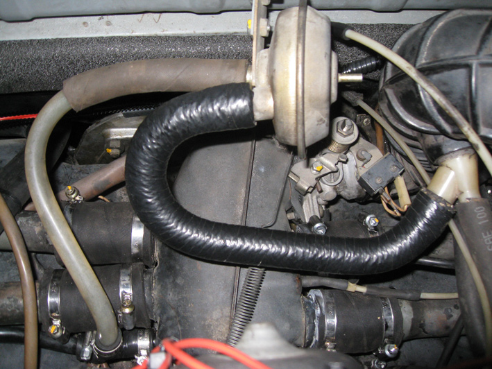 Mein Thermostat war defekt, was den Zug zu den (ich glaube) Luftklappen oben auf dem Motor betätigt. Neues Thermostat wurde verbaut und zusätzlich das festsitzende Gestänge dieser Luftklappen wieder gangbar gemacht. Grundsätzlich funktiert es auch, aber manchmal hakt das Gestänge trotzdem noch innerhalb der seitlichen Halterungen. Es ist so gering, dass es sich von Hand ohne Probleme bewegen lässt, aber hin und wieder beim Zug nicht funktiert. Deshalb hat mir die Werkstatt die Klappen ein wenig offen gelassen, damit sie sich nicht ganz schließt.