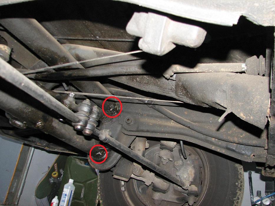 Schau einfach in Robins Beitrag, also den drei über dem hier. Da wo der rote Kringel ist, am unteren Ende der Achsseitenschilder. Die Schilder bestehen aus zwei in Form gepresste Bleche, die fast überall miteinander verbunden sind, außer an ihrer tiefsten Stelle, da ist das Loch. Im Zweifelsfall U-Schutz oder sonstige Mampe wegpopeln, dann findest du sie auch, und dann müßen sie auch freigelegt werden.t2_alex hat geschrieben:Hallo Robin,