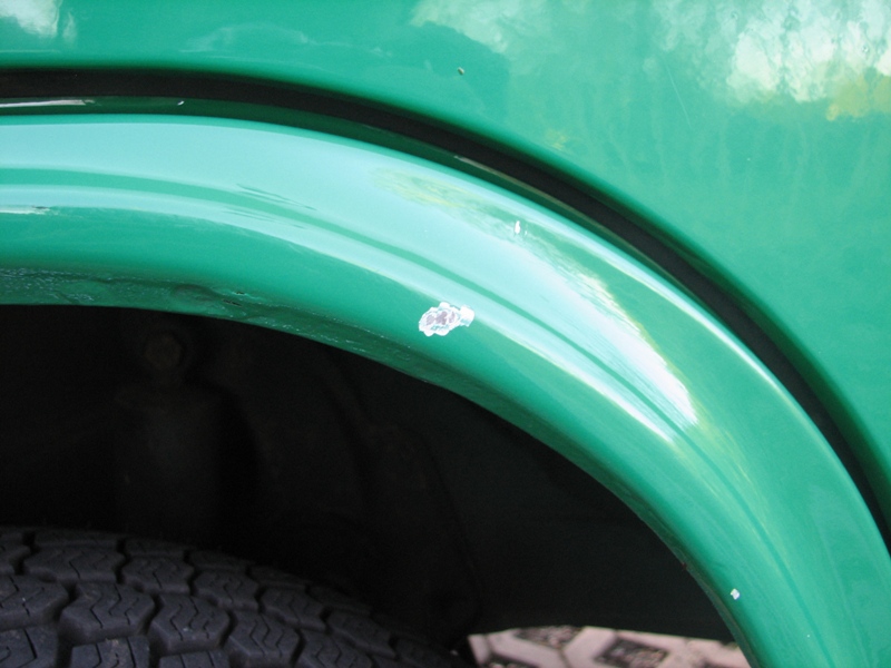 nachdem ich von meiner Ausfahrt wiedergekommen bin, fiel mir eine Stelle am Kniestück auf: Dabei habe ich das erst letztes Jahr lackieren lassen.