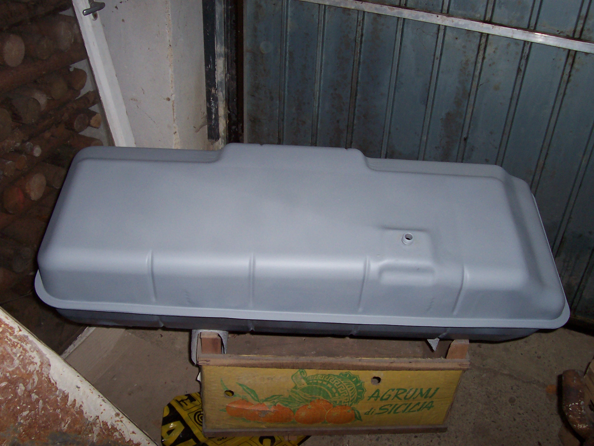 Oberseite - Mittig der Anschluss für die Tankentlüftung, davor die 5 Löcher für die Befestigung des Tankgebers, seitlich der Wulst für den Tankeinfüllschlauch und -stutzen