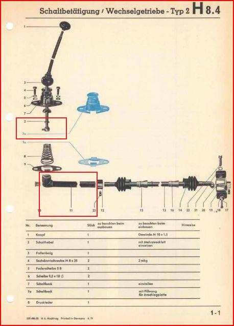 Ich bin daher immer noch auf der Suche nach dem kleinen Stift und der Feder oder einem kompletten Schaltstock(Bauteil 2). Ausserdem bräuchte ich wohl noch die Schaltstange(Bauteil 11)