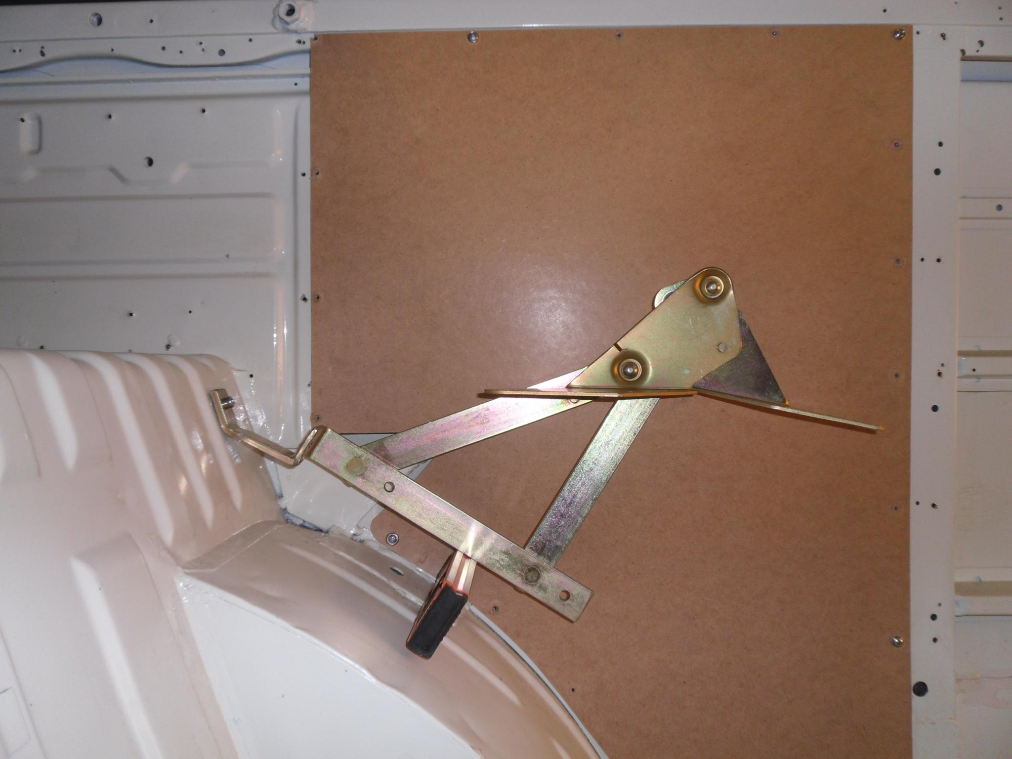 ich hab die gelblichen Klappbankscharniere gekauft und angefangen die Bank zu bauen. Ich bin mir aber noch unsicher, in welcher Position die Scharniere an den Seitenteilen der Bank befestigt werden müssen. Also in welchem Winkel die untere Strebe stehen muss. Beim Versuch heute lag ich schon mal falsch :roll: Ich habe aber auch die erste Biegung (die bei der Verschraubung ins Blech) etwas vergrößert, weil ich zunächst mal die Schlaffläche eben bekommen wollte.