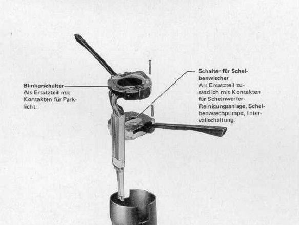 Zugang zum Schalter: Lenkrad runter, von unten hinter der Lenksäulenabdeckung die Stecker abziehen, oben am Multischalter die 4 Schlitzschrauben entfernen und Lenkstockschalter nebst Ventil nach oben herausziehen. Ferdsch.