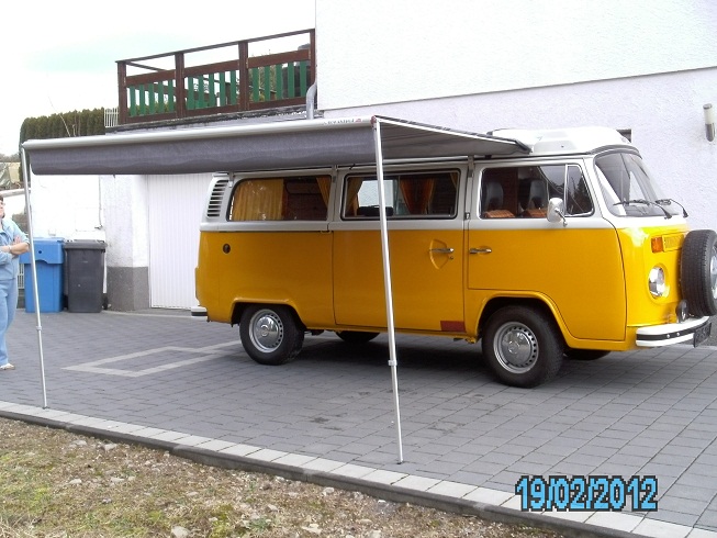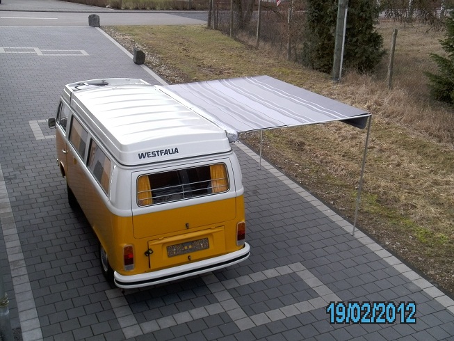 es handelt sich hier um eine Caravanstore von Fiamma, kostenpunkt 199,-€ plus 25 ,€ versankosten. ich hab sie in holland bestellt. der markiesensack hat eine länge von 3,10 m und ist ausgerollt 2,25 tief. die stützen, je 2 pro seite, sind rechts und links im rohr integriert. die halter gibt es auch zu kaufen, kosten aber im paar 82,-€ plus versand, was mir zu teuer war. ich hab sie mir bei uns aus VA machen lassen.