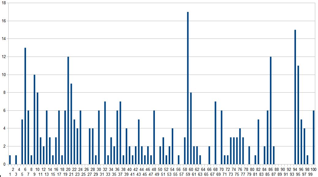 6 13; 9 1; 10 10; 20 12; 21 10; 59 19; 60 10; 86 13; 94 16; 95 12; So und nun zu dem Problem: Das sind 10 Bilder, in einen Kalender passen 12 und 4 Bilder haben mit 8 Stimmen Punktegleichstand.