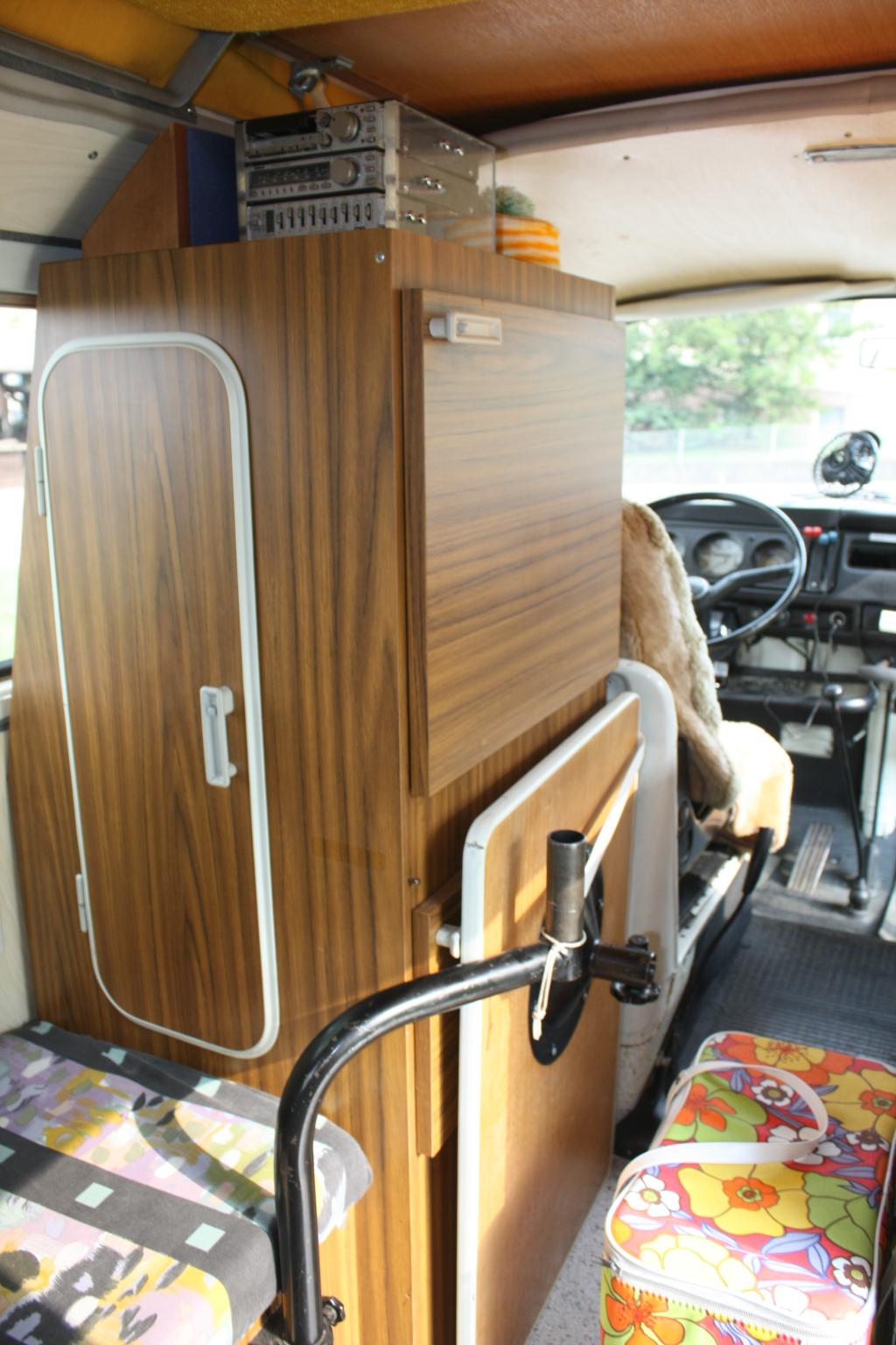 Der Gas-/Kleiderschrank als Ganzes. Das schöne Überziehpolster und Vorhänge sind nicht orginal...