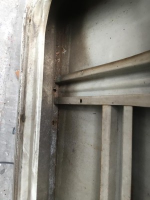 Dieses Jahr geht's mit den Türen weiter - an der Fahrertür die Verkleidung abgebaut und erste Bestandsaufnahme. Außen drück's an ein/zwei Stellen an der unteren Kante, ansonsten sind außen bis jetzt nur zwei Durchrostungen zu sehen.