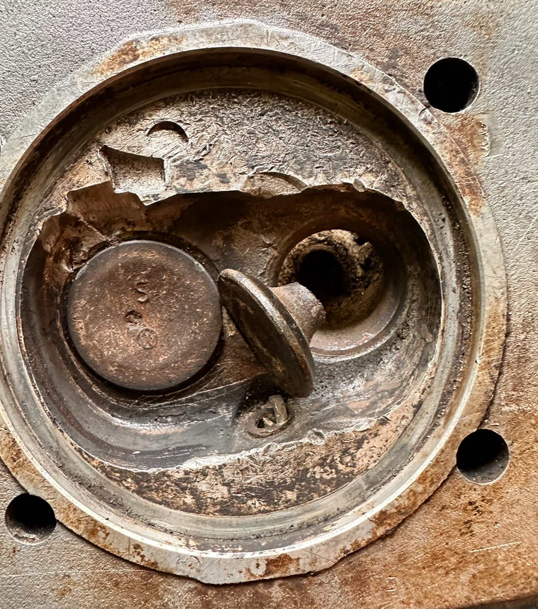 habe es endlich geschafft den Motor auseinanderzunehmen, den ich vor Jahren gekauft habe. Er hat einen Ventilabriss im 1. Zylinder.
