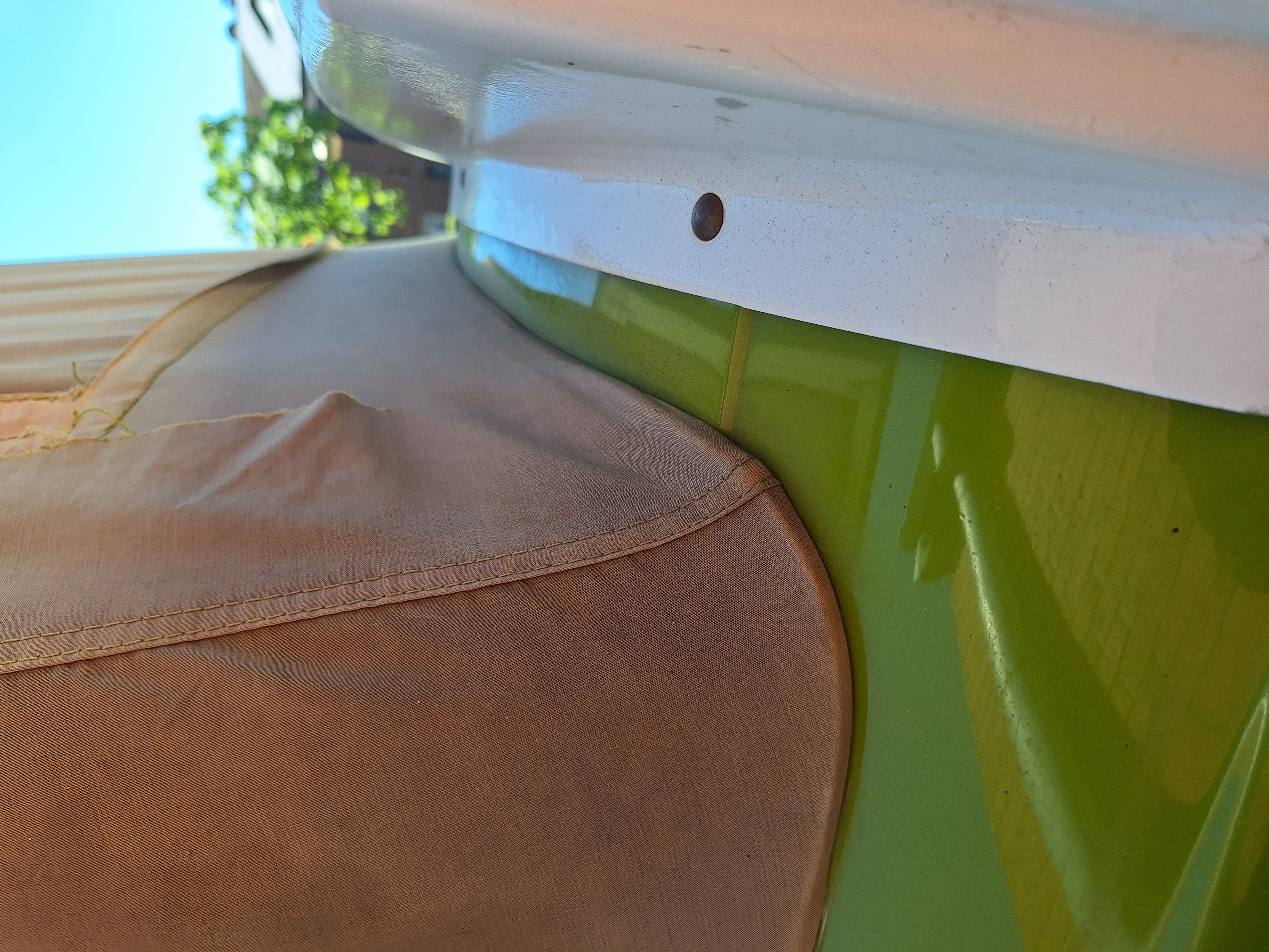 habe diese Woche nach langem hin und her entschieden, das Dachzelt unseres Bulli zu selbst wechseln. Wir hatten noch das originale Zelt der Auslieferung verbaut und mittlerweile war der Stoff völlig ausgeblichen, sehr fleckig mit deutlichen Stockflecken in den Ecken und etlichen kleinen und größeren Löchern .