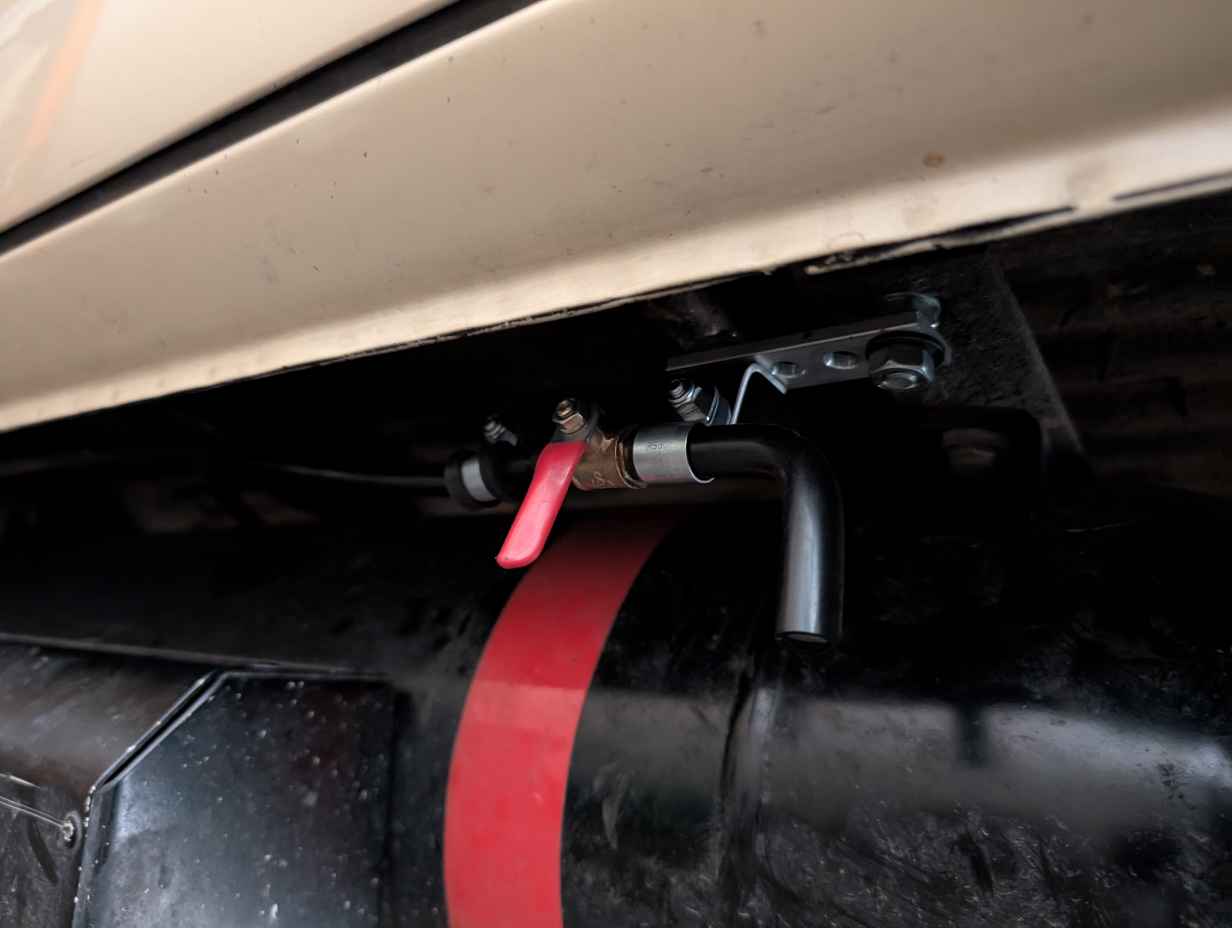 ich habe den Ablauf vom Wassertank mit einem Außenwasserrhahn kombiniert: