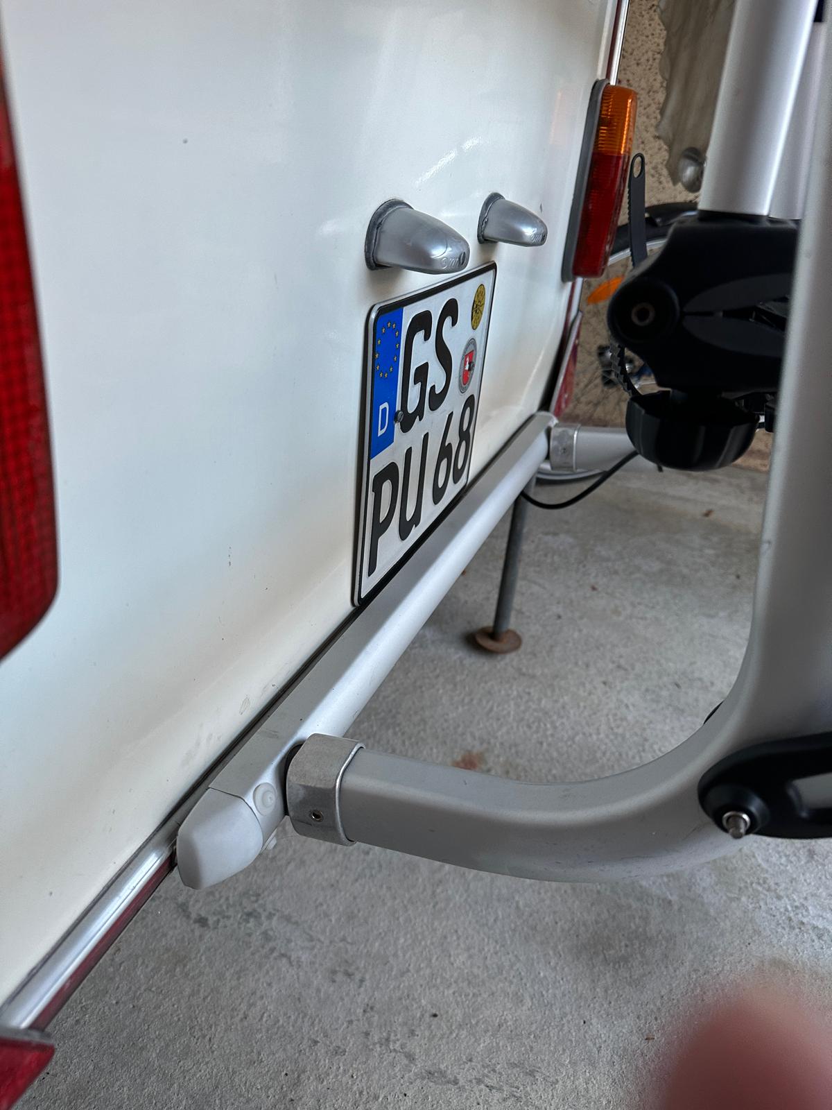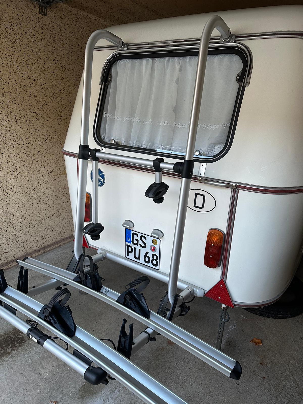Da habe ich am Heck des Eriba einfach noch einen ordinären Fahrradträger angebracht.