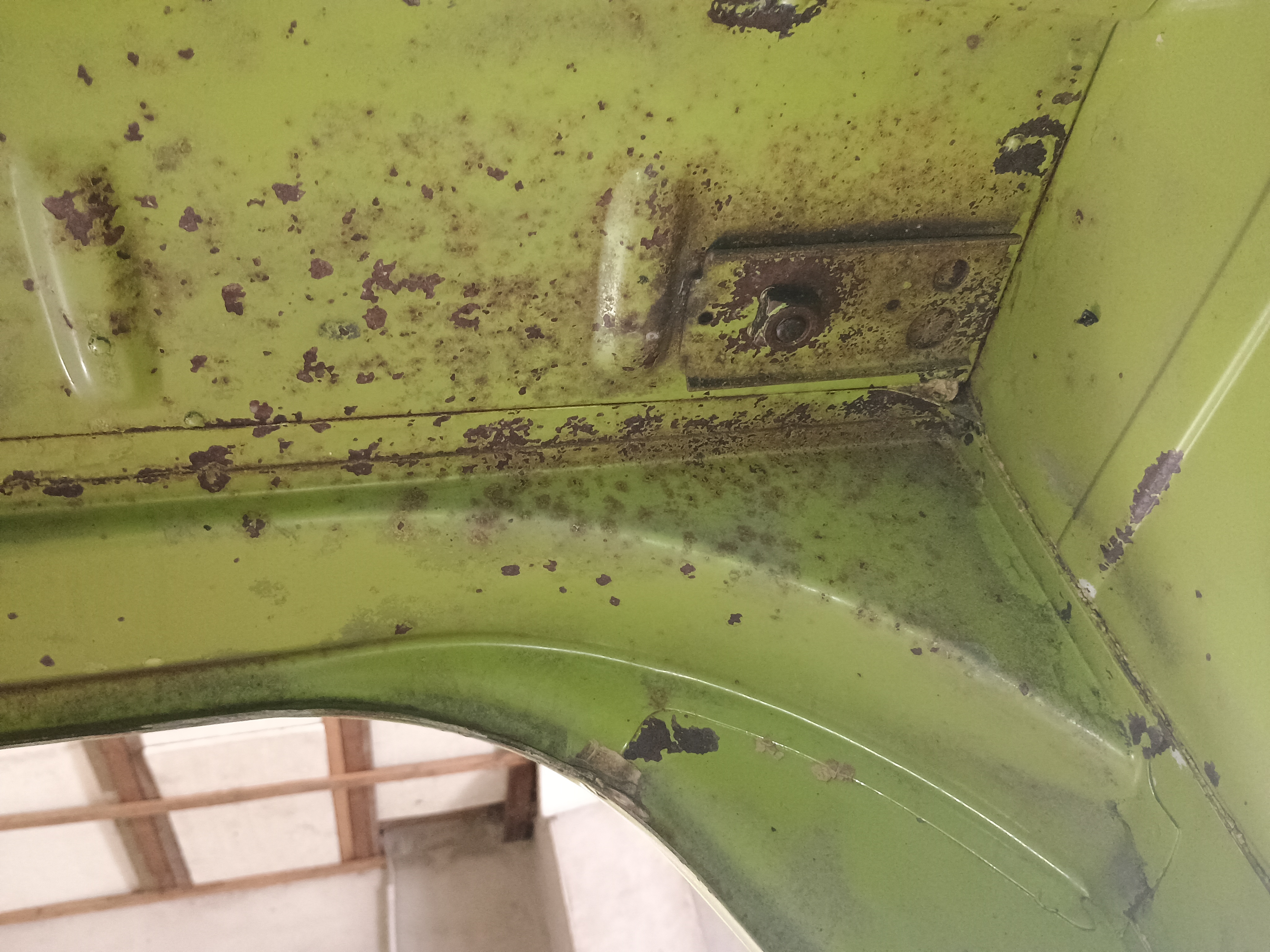 Das Blech habe ich in der Stärke von etwa 0.8 mm in Erinnerung und vom Ausschnitt gemessen reicht es um etwa 2 - 3 cm weiter.