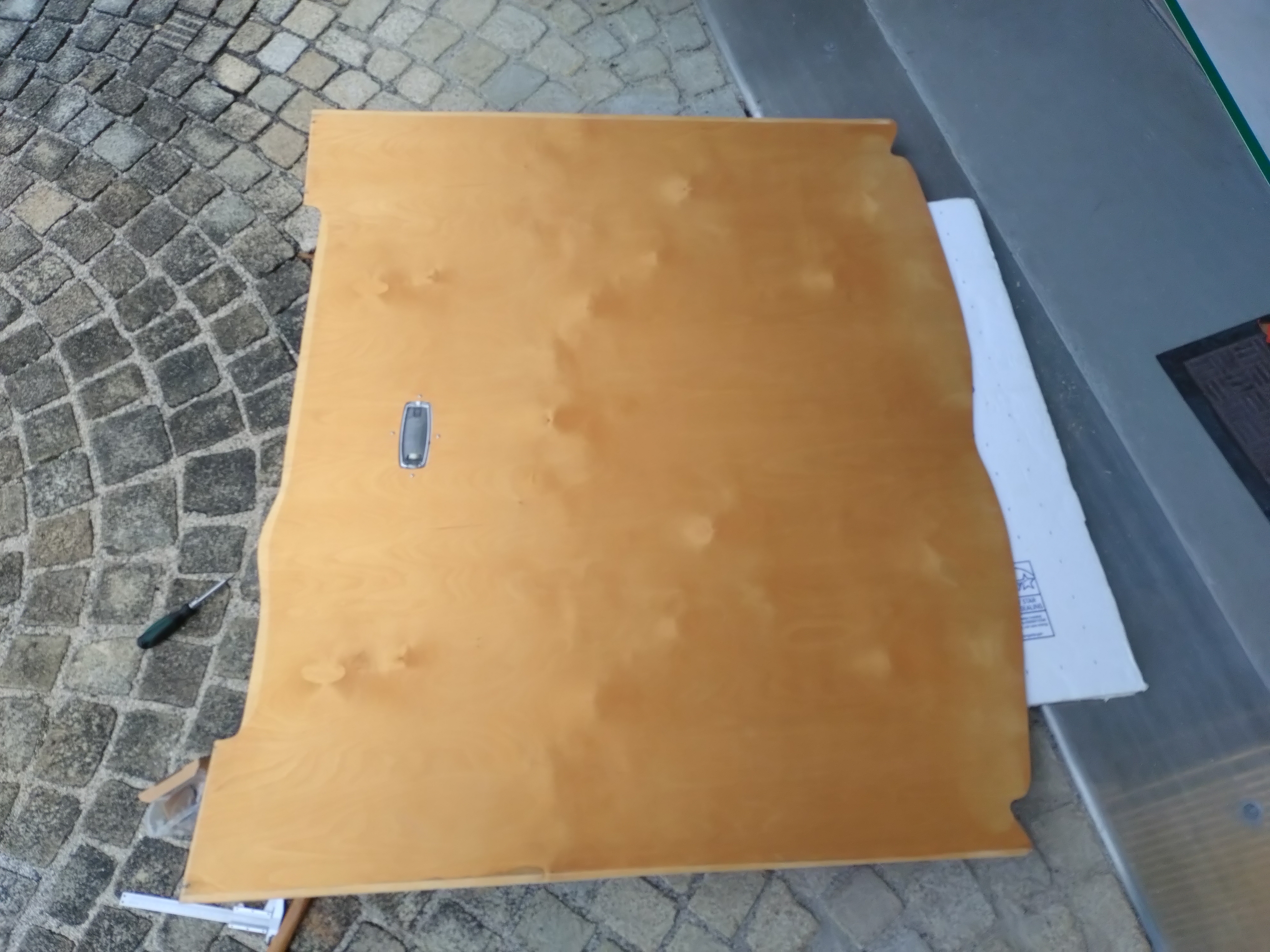 Das Blech habe ich in der Stärke von etwa 0.8 mm in Erinnerung und vom Ausschnitt gemessen reicht es um etwa 2 - 3 cm weiter.