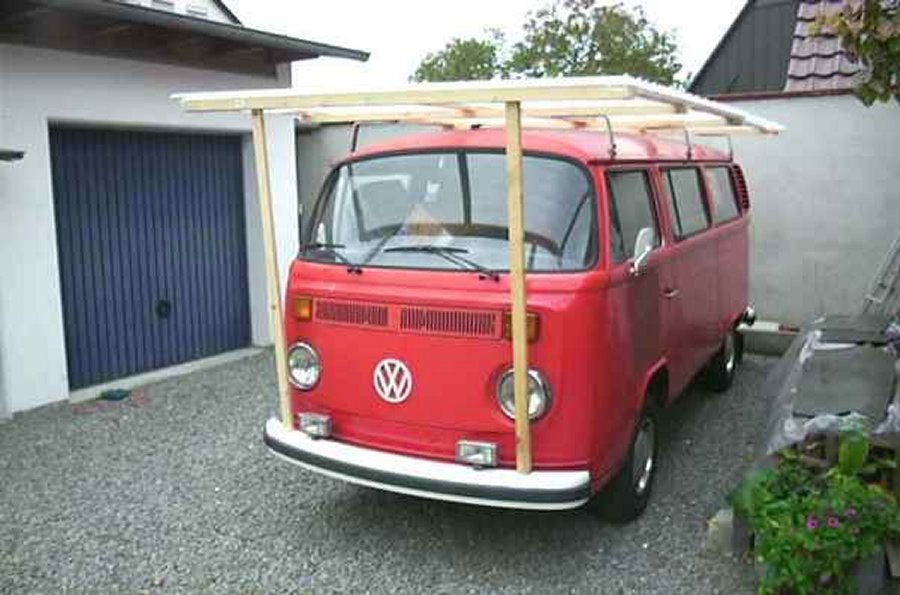 HeinzT2a hat geschrieben:Hallo,als ich mal Platznot hatte baute ich schnell einen Unterstand, mit dem konnte man sogar umparken und er war sehr gut durchlüftet...