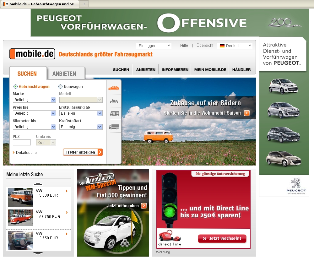 Auf der Hauptseite eines Online-Auto-Marktplatzes: