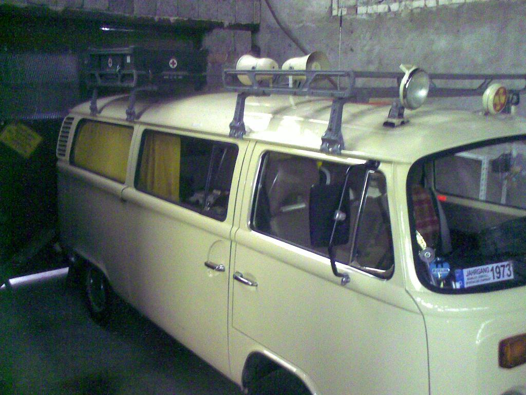 abgeholt und in die "neue" Garage gestellt, damit man beim Bulli-Schrauben auch eine stilvolle Unterhaltung hat.