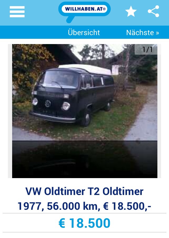 dann schau mal in die Mobile - oder Ebay-Kleinanzeigen - da wird ein T2 für 27900 angeboten, und dann hat der nen Käferauspuff hintendran... http://kleinanzeigen.ebay.de/anzeigen/s ... ref=search
