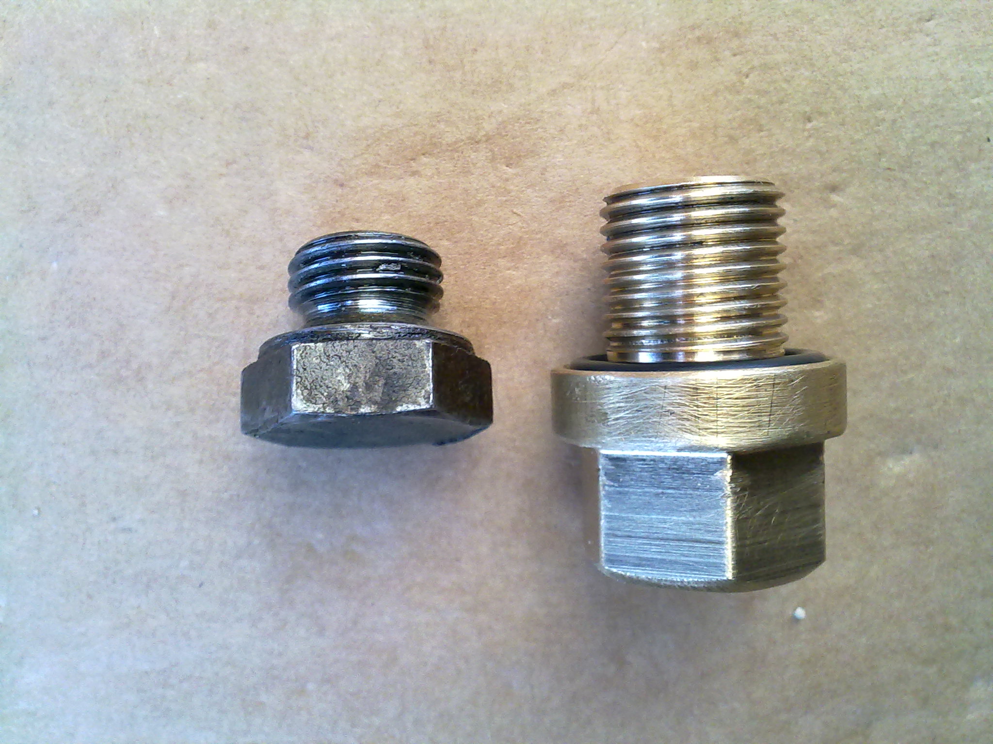 dann noch durchdrehende ölablassschraube entfernt und neue ölablassschraube montiert, jetzt mit M16x1,5.
