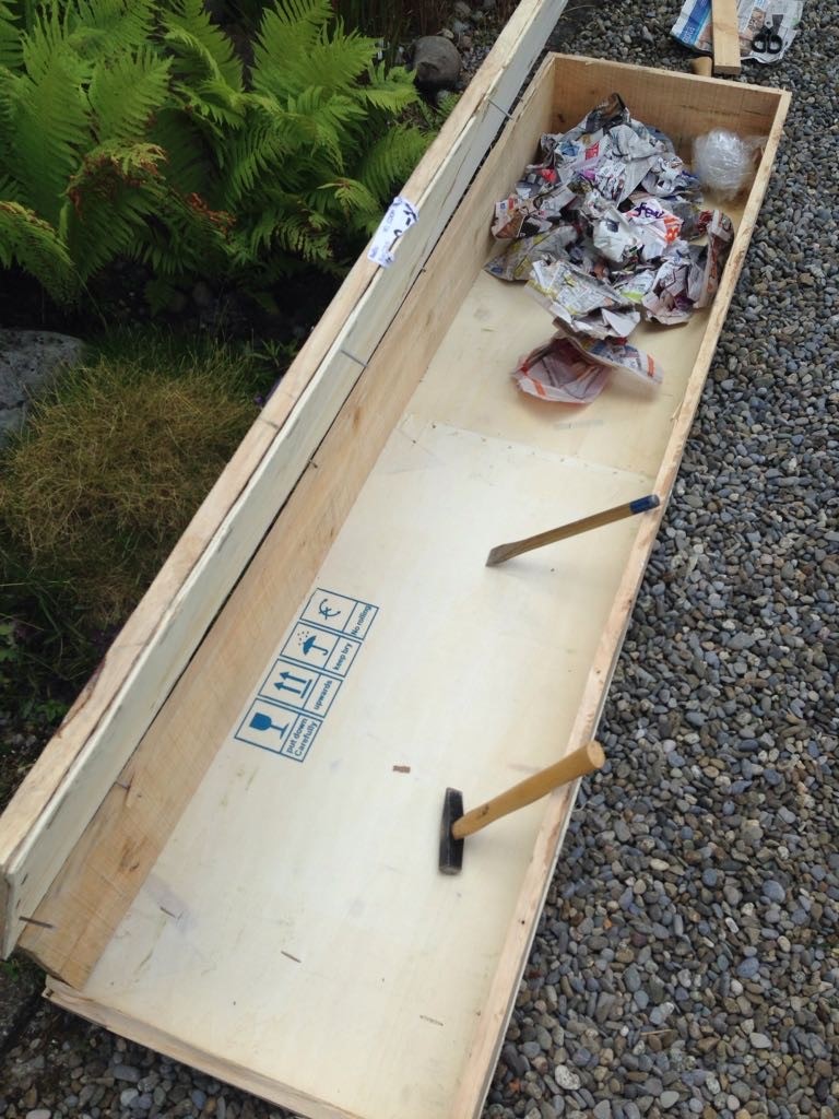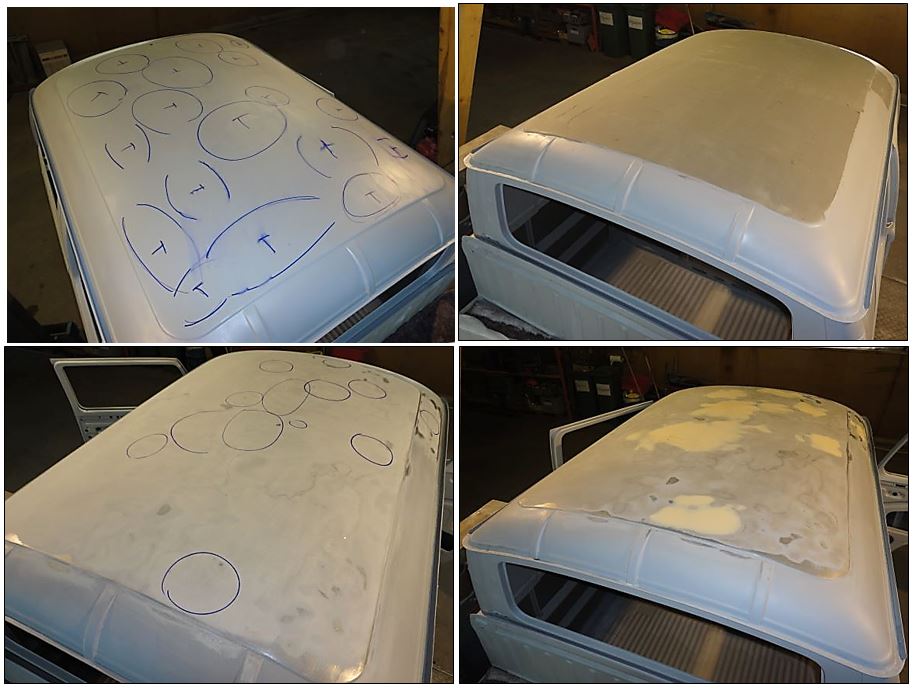 Danach das Rollgestell wider angeschraubt, was eigentlich ganz gut funktioniert hat. Im Anschluss die gesamte Doka aussen mit 240er Körnung angeschliffen und fürs füllern vorbereitet.