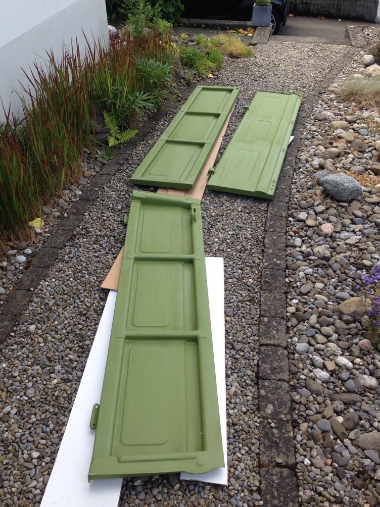 Die Bordwände sind angepasst, ausgerichtet, geschliffen und grundiert. Bin froh habe ich mich für die KlassicFab Variante entschieden. Diese passen sehr gut und so habe ich mir x-Stunden Spenglerei bei den alten Bordwänden erspart.