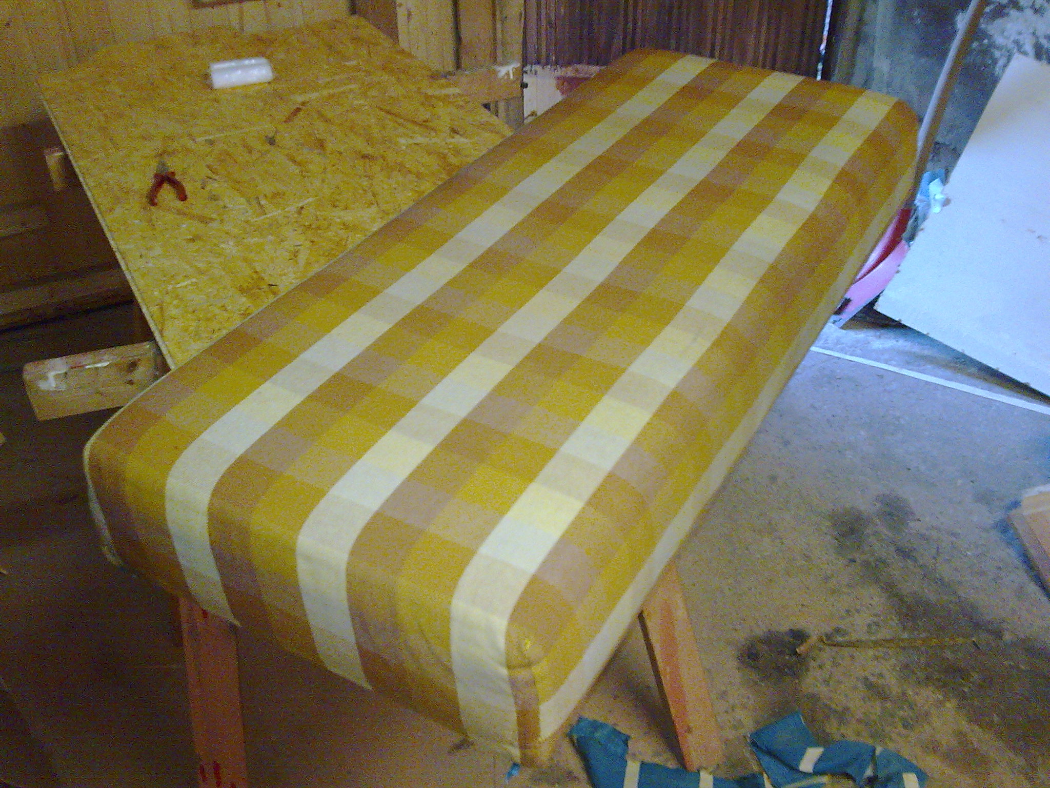 Jau, vom Stoff her schon...aber die Bank unzweifelhaft in meinem Bus drin. Mit Schrank. Und sie passte genau! Der T1 war doch schmaler ?!